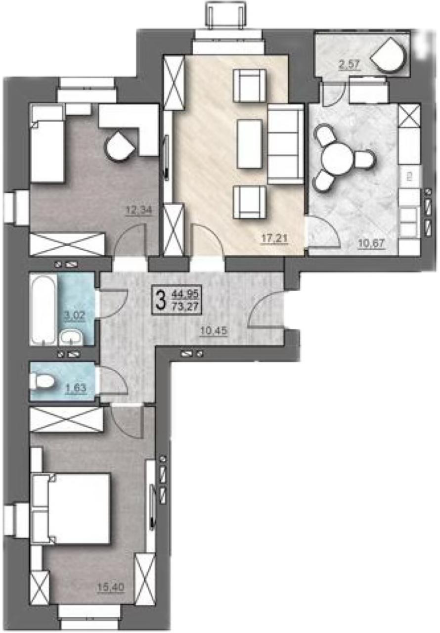 Общая площадь 73.27 м2