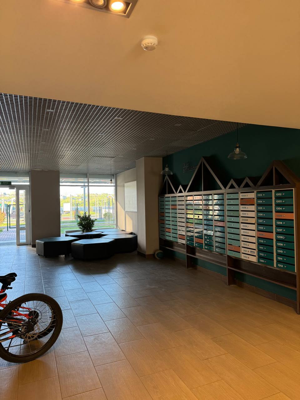 На первом этаже дома размещена колясочная, зона для ожидания гостей ,круглосуточная охрана.