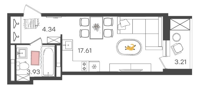 Жилая площадь 17.61 м2