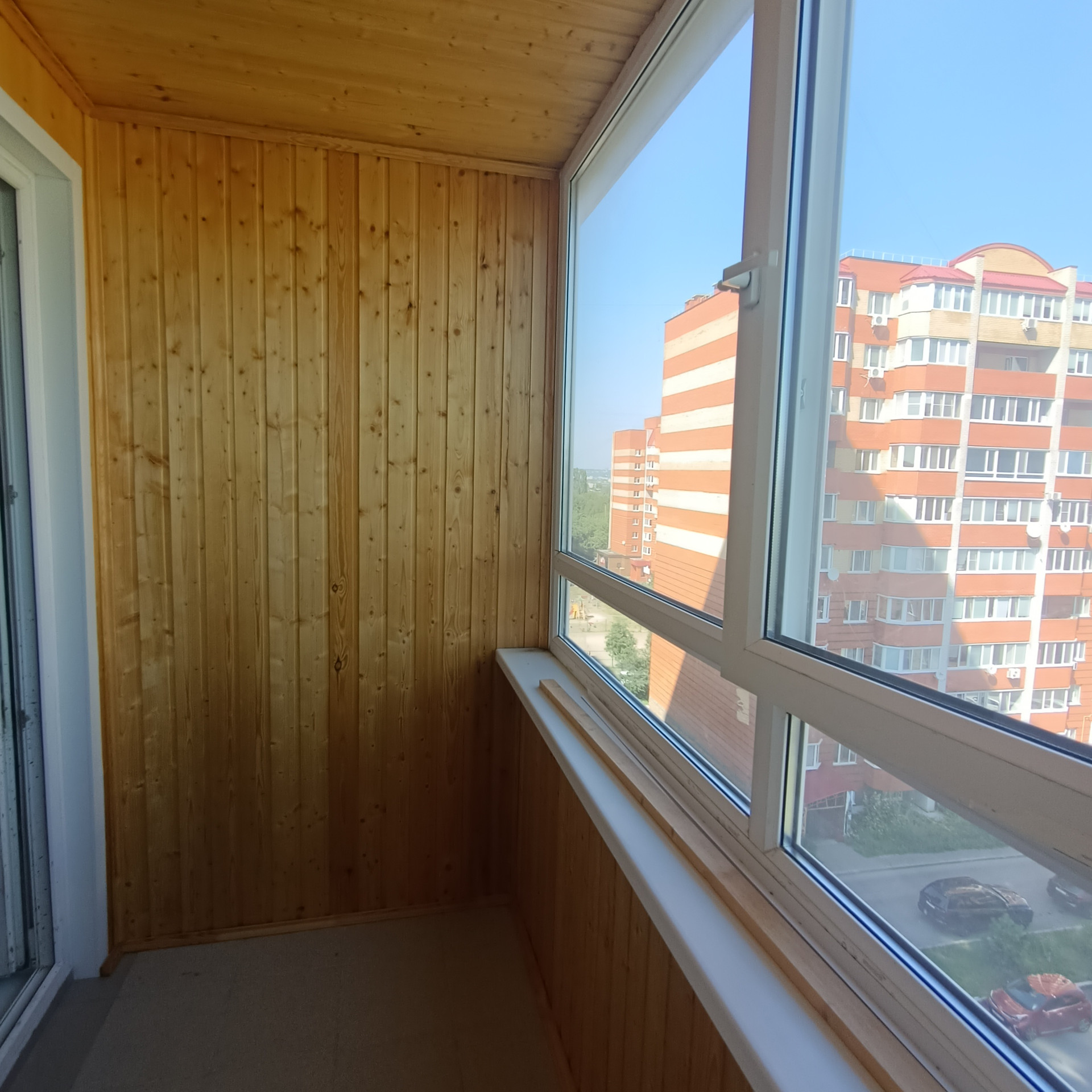 Глубокий и удобный балкон, отделан евровагонкой!