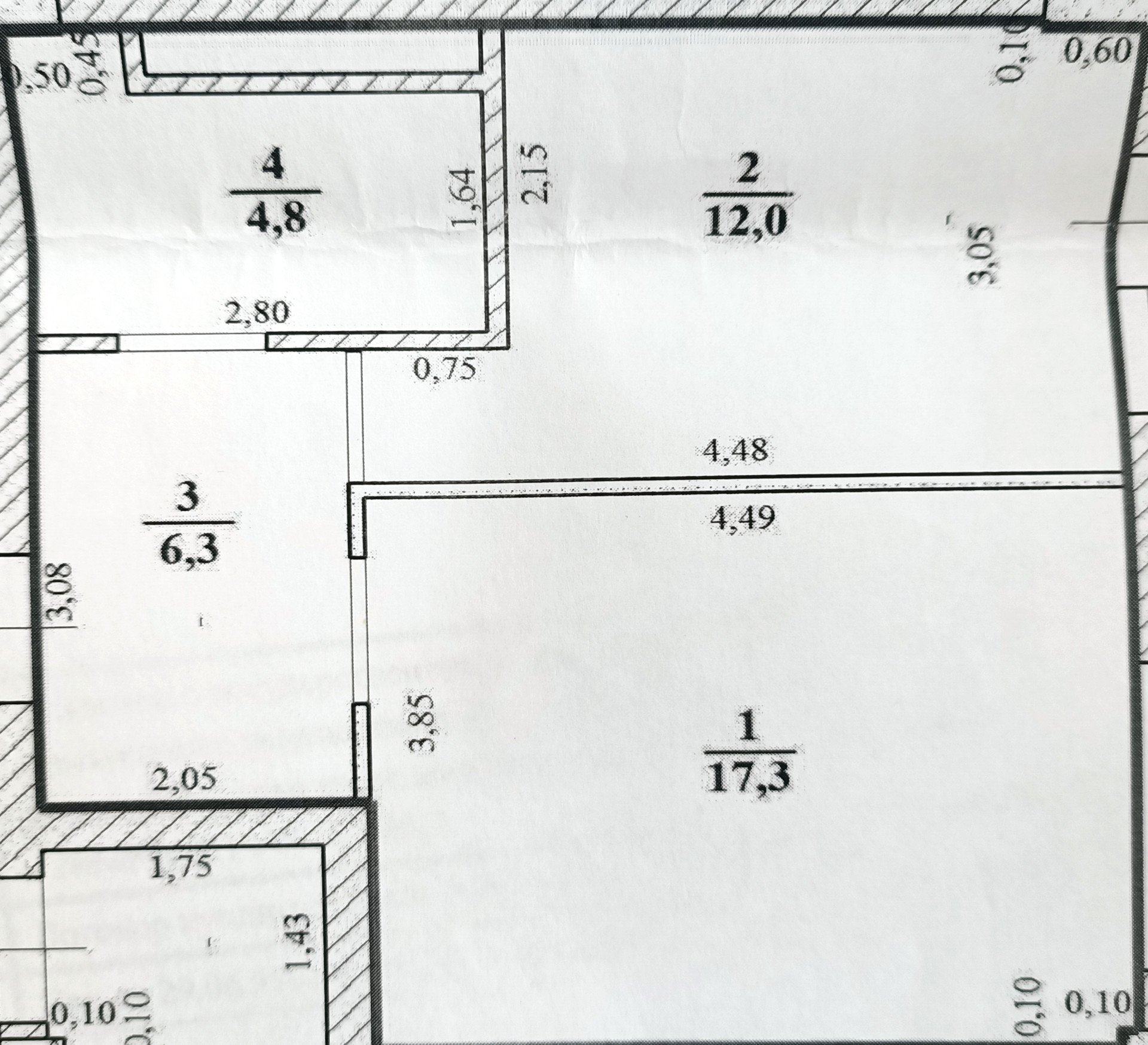 Жилая площадь 17.3 м2