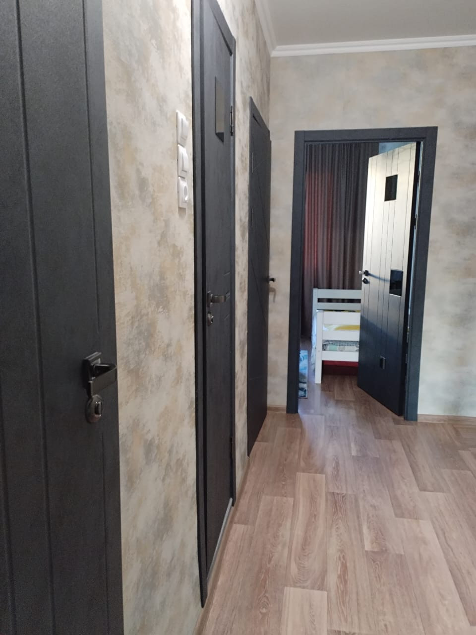 В квартире сделан современный ремонт в едином стиле: - надежная входная бронированная дверь; - пластиковые окна, - современные красивые двери; - натяжной потолок во всех помещениях; - изысканные обои ведущих производителей, сан.узлы отделаны кафелем.
