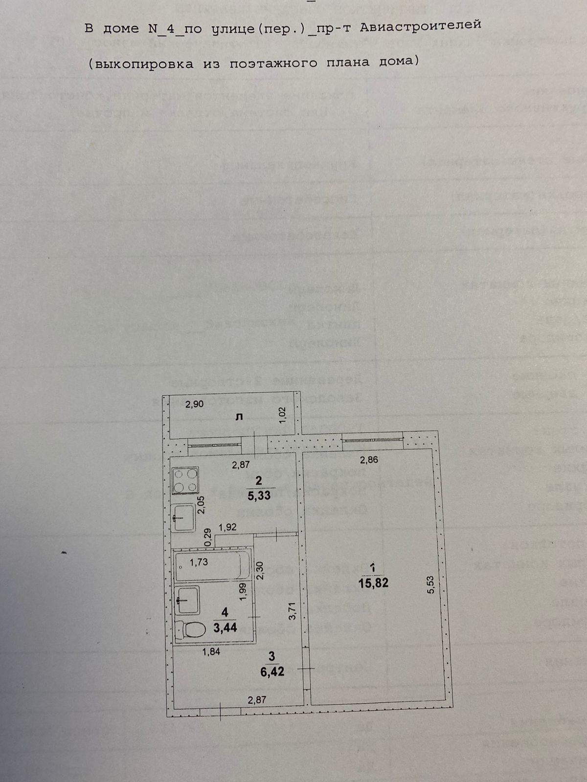Площадь кухни 5.3 м2