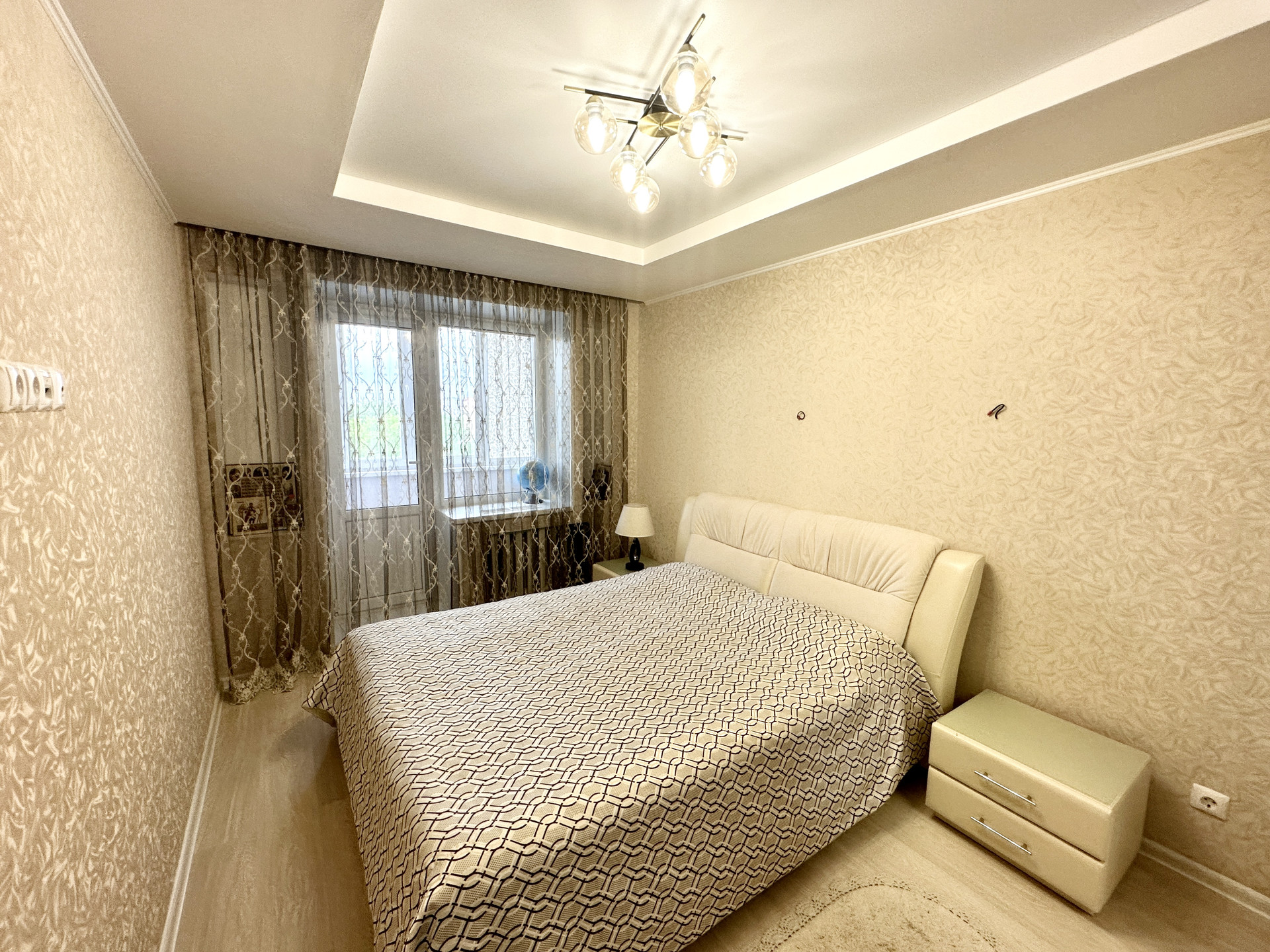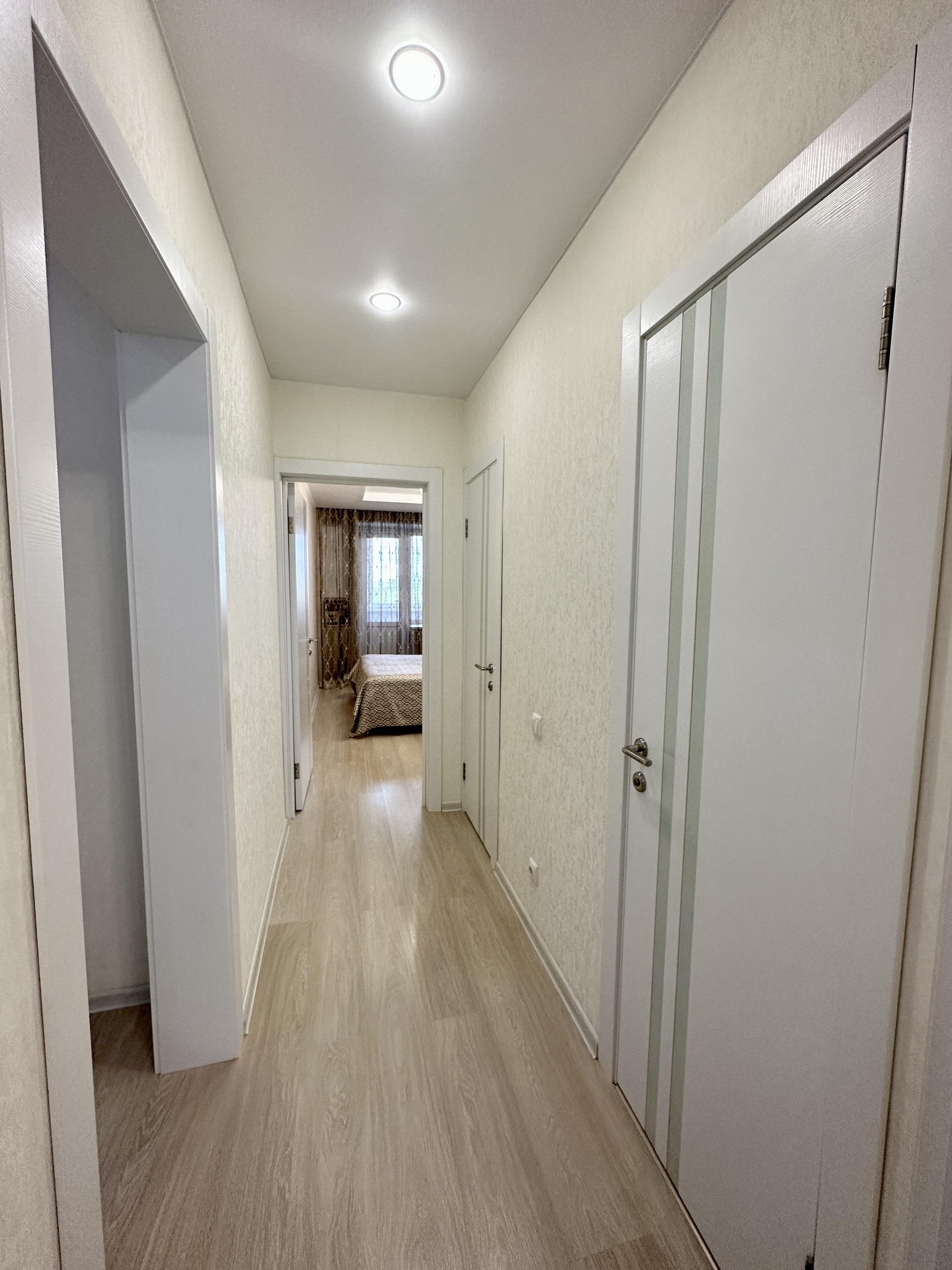 Установлены пластиковые окна, натяжные потолки, бронированная входная дверь, на полу ламинат 33 класса, качественные межкомнатные двери, сан.узел под ключ, на всех окнах установлены жалюзи.