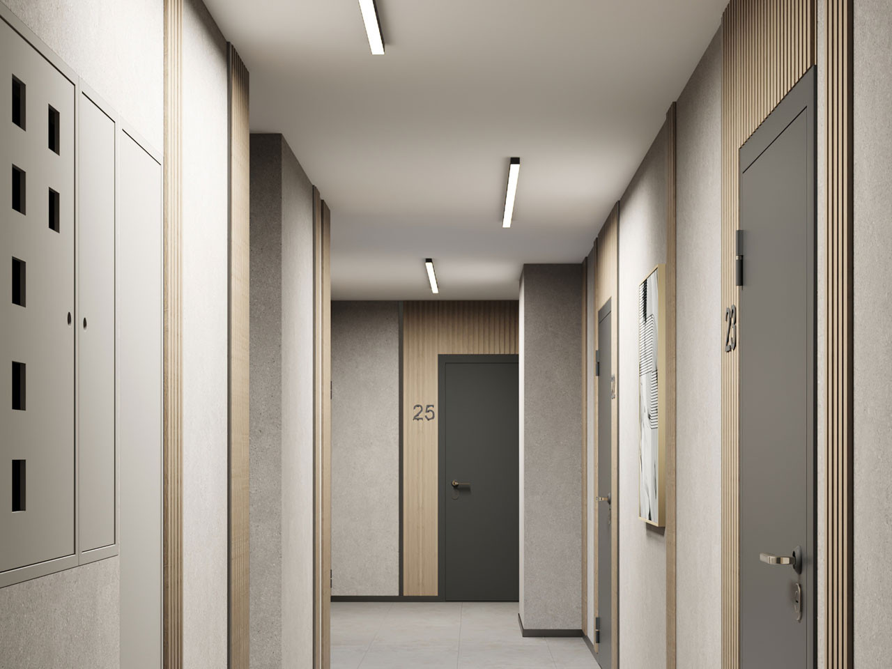 В доме на 1-ом этаже консьерж следит за порядком.