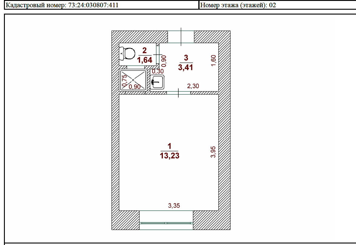 Общая площадь 18.3 м2
