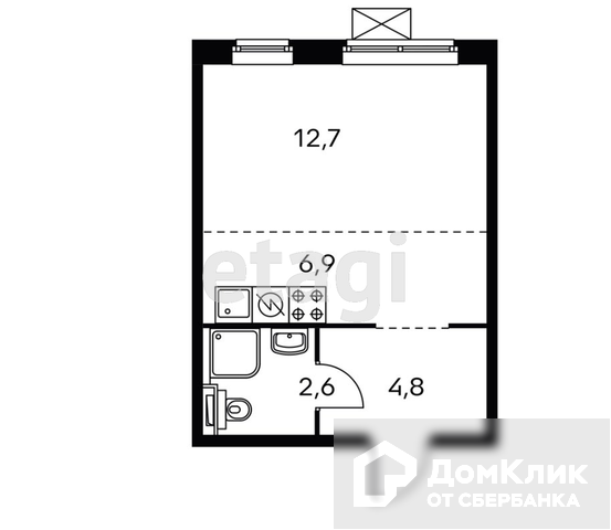 Квартир-студия , классическая схема планировки, создающая атмосферу уединения и спокойствия.
