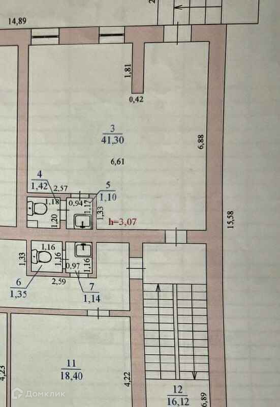 Общая площадь 41.3 м2