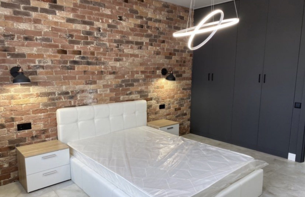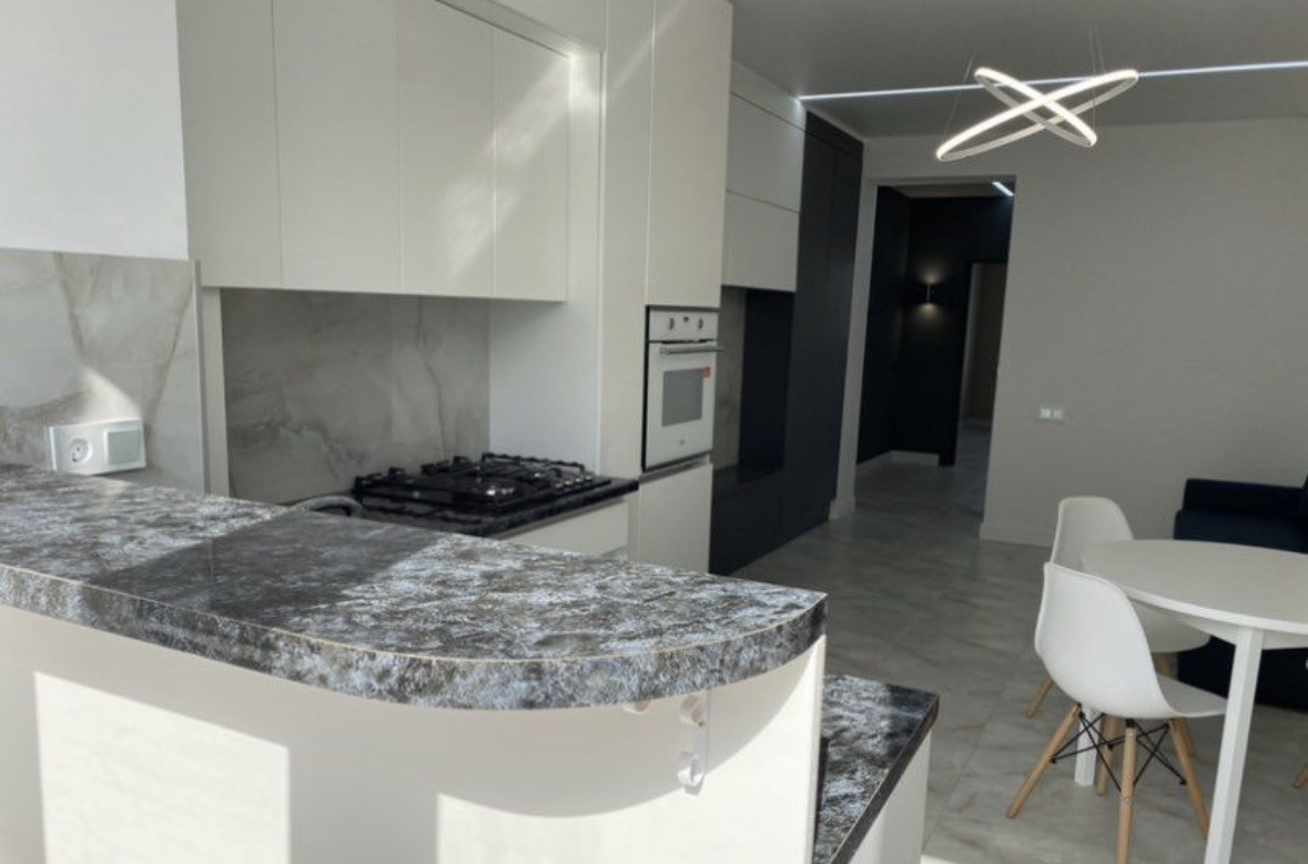 Есть кухня, стильные встроенные шкафы, кровать, диван, хорошая техника.