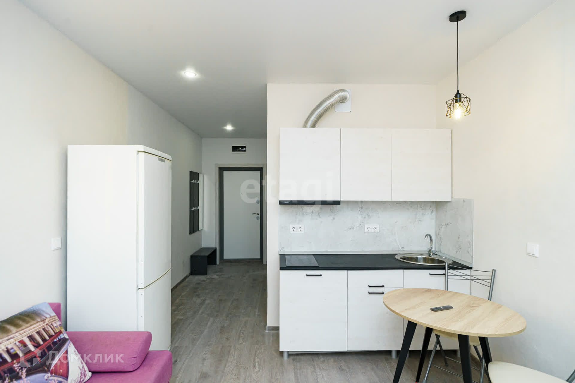 МЕБЕЛЬ: кухонный гарнитур, обеденный стол, стулья, диван, гардеробная зона.