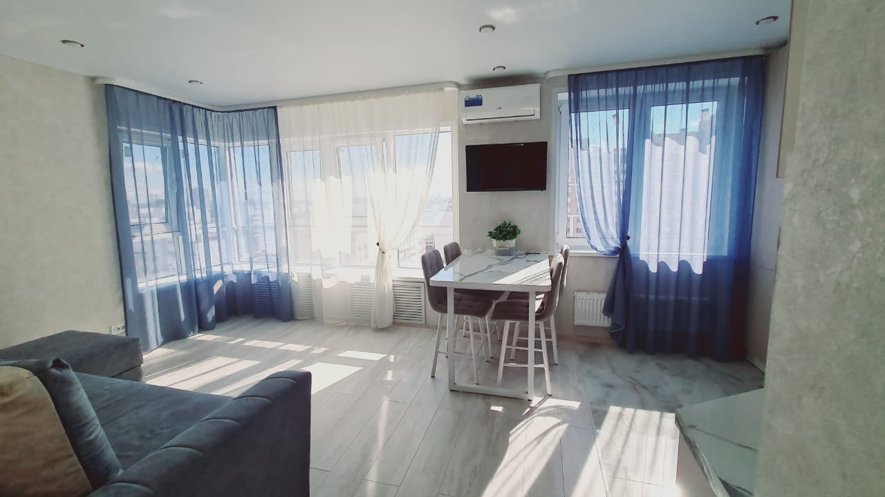 Квартира в отличном состоянии, сделан дизайнерский ремонт. Во всей квартире установлены пластиковые окна. Филенчатые межкомнатные двери в едином стиле. На полу уложен ламинат высокого качества, и напольная плитка, потолки натяжные с точечными светильниками. Совмещенный санузел под ключ, кафель. Входная бронированная дверь.