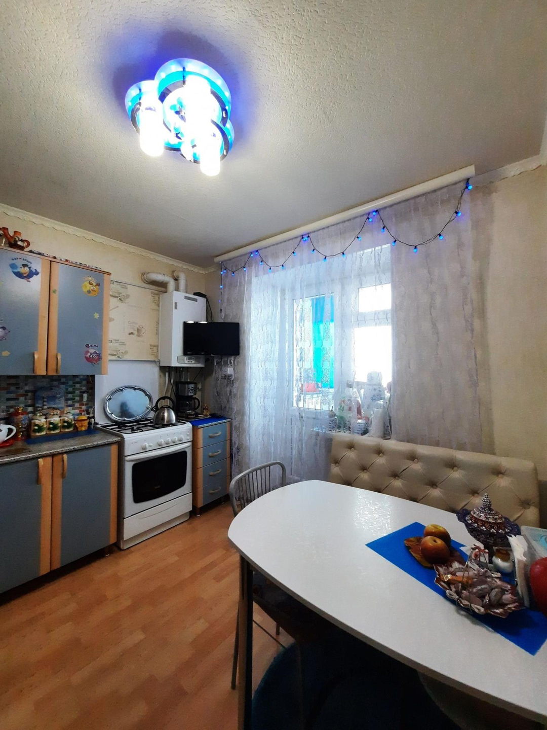 В квартире установлен газовый котел, что существенно экономит Ваши коммунальные платежи. В квартире ровные потолки, пластиковые окна, которые выходят на обе стороны, везде постелен ламинат. Имеется гардеробная комната, просторная лоджия (застеклена- пластик)-выход с кухни. Ванная и туалет раздельные. Комнаты не проходные. Удобная планировка. Новому собственнику остаётся кухонный гарнитур, холодильник, шкаф в спальне, остальная мебель по договоренности.