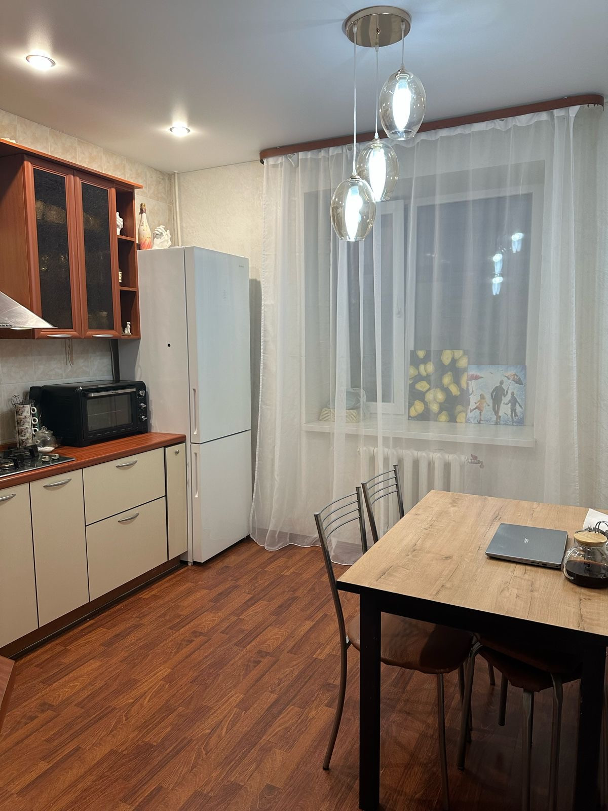 Квартира находится в очень хорошем районе. Рядом садик, больница, круглосуточный магазин.