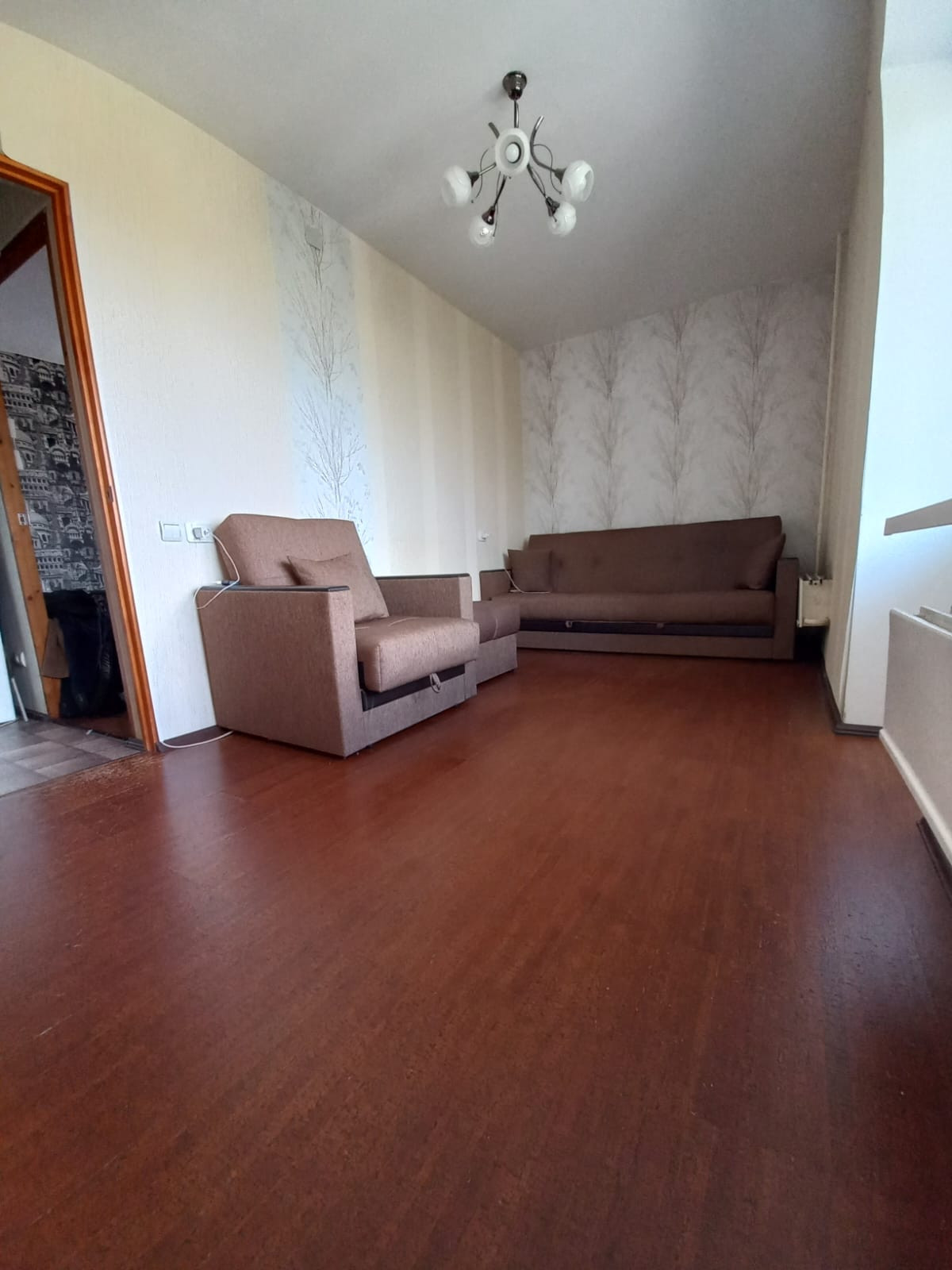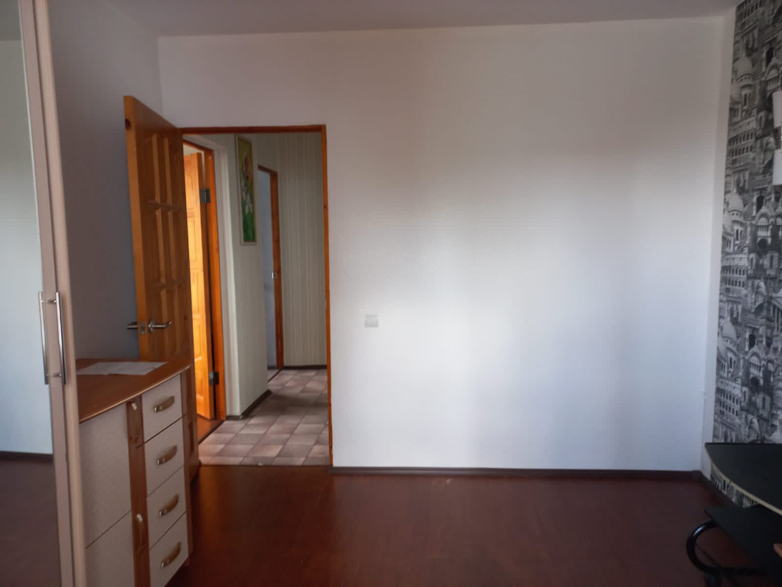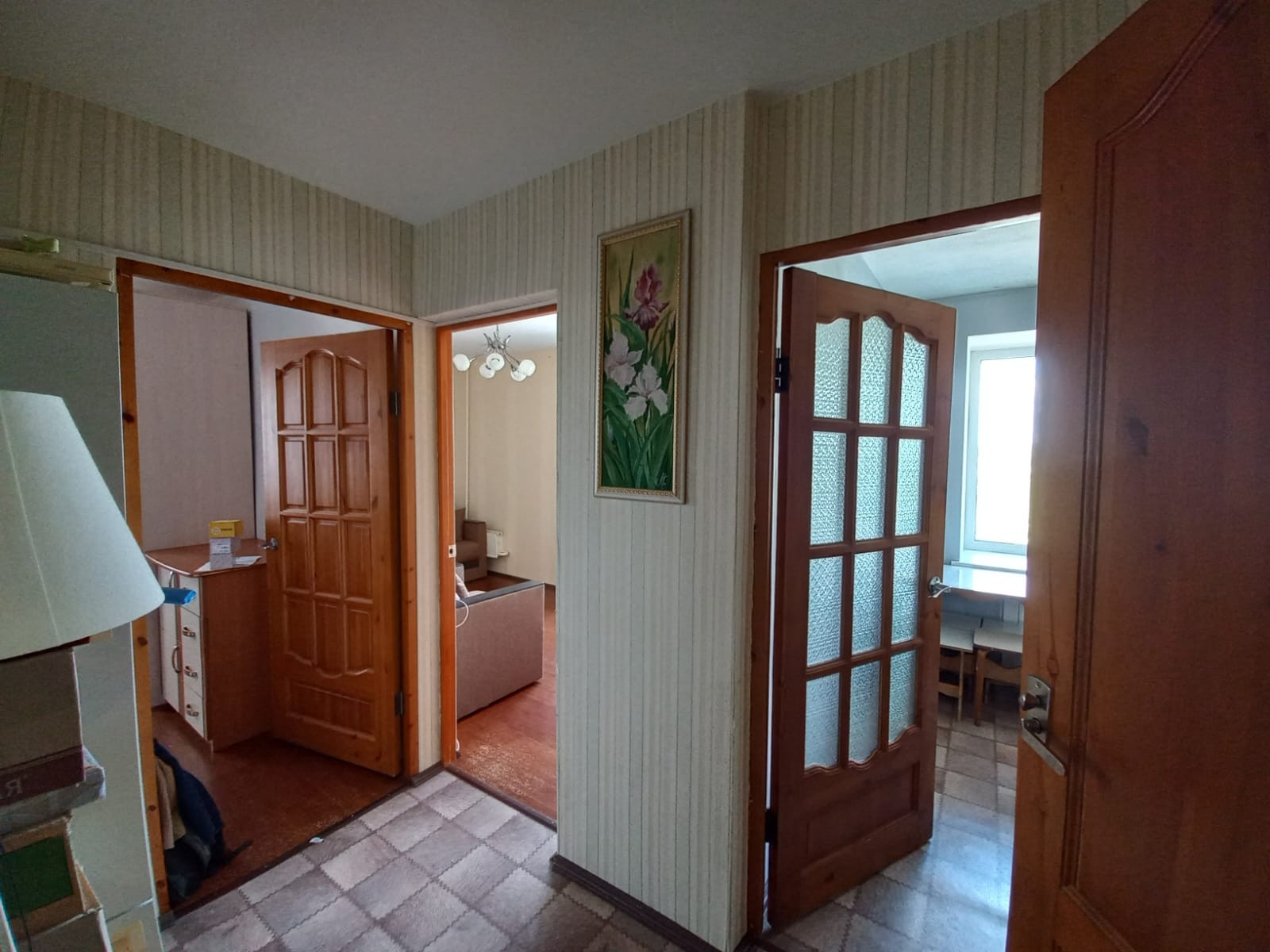 В комнатах и коридоре поклеены обои, кухня-крашеные стены и плитка, ванна- плитка.