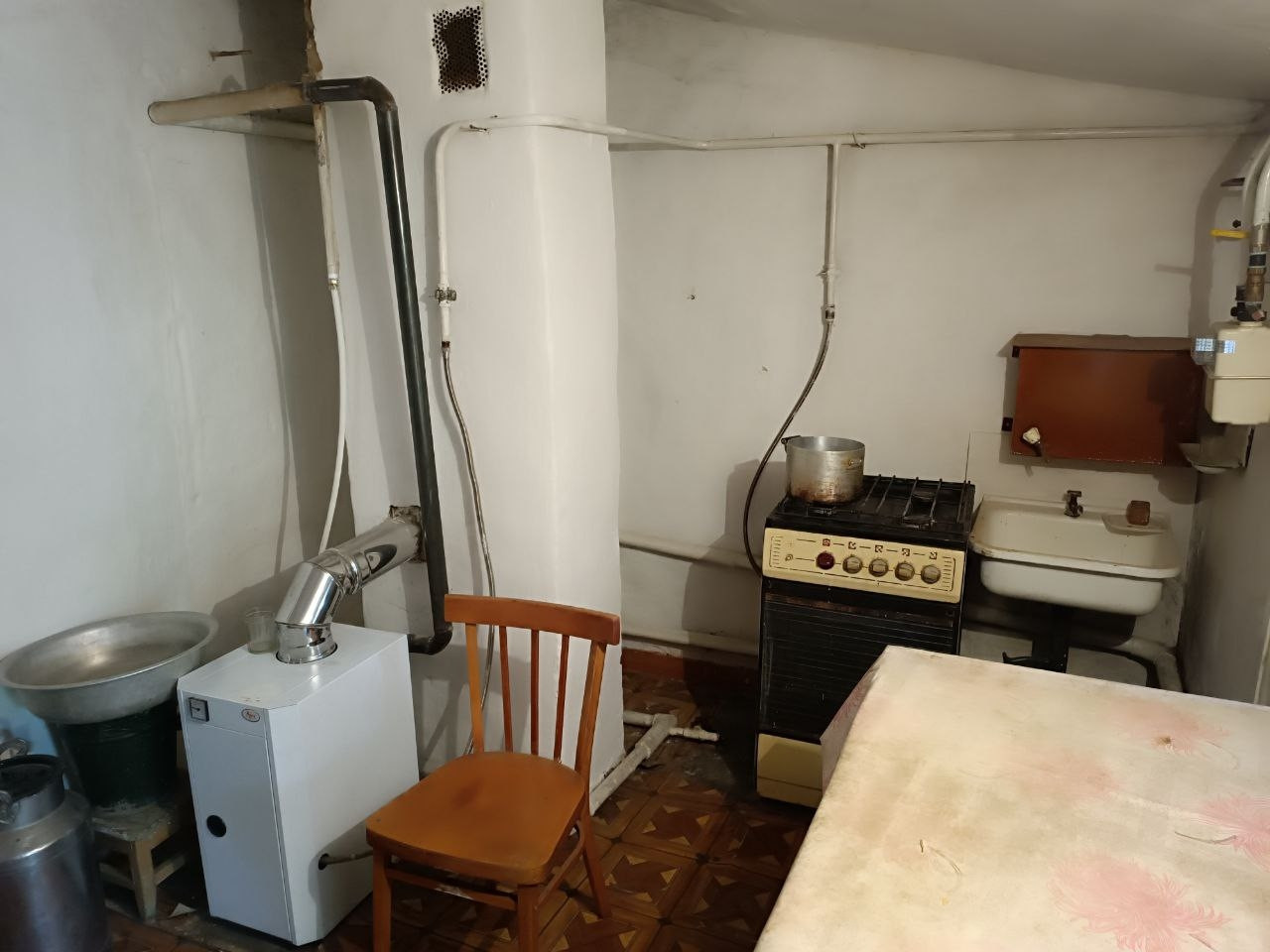Есть летняя кухня с погребом, хоз блок , 3 сотки земли под огород, Газ , вода не в доме .