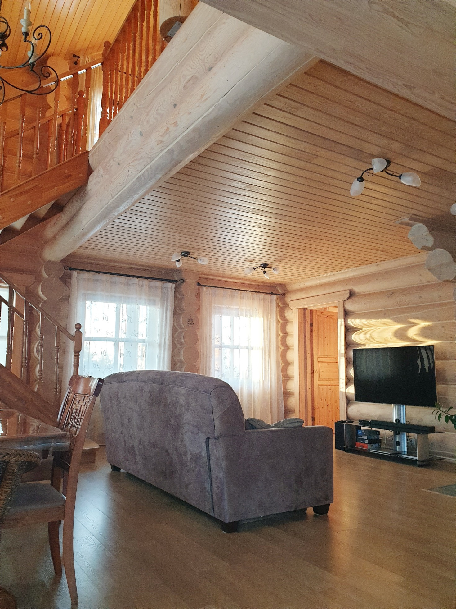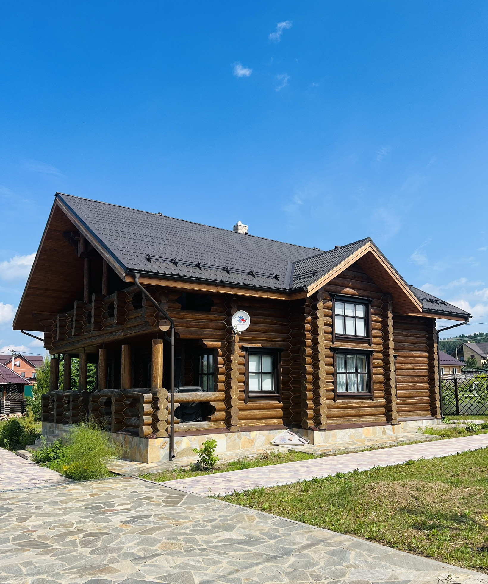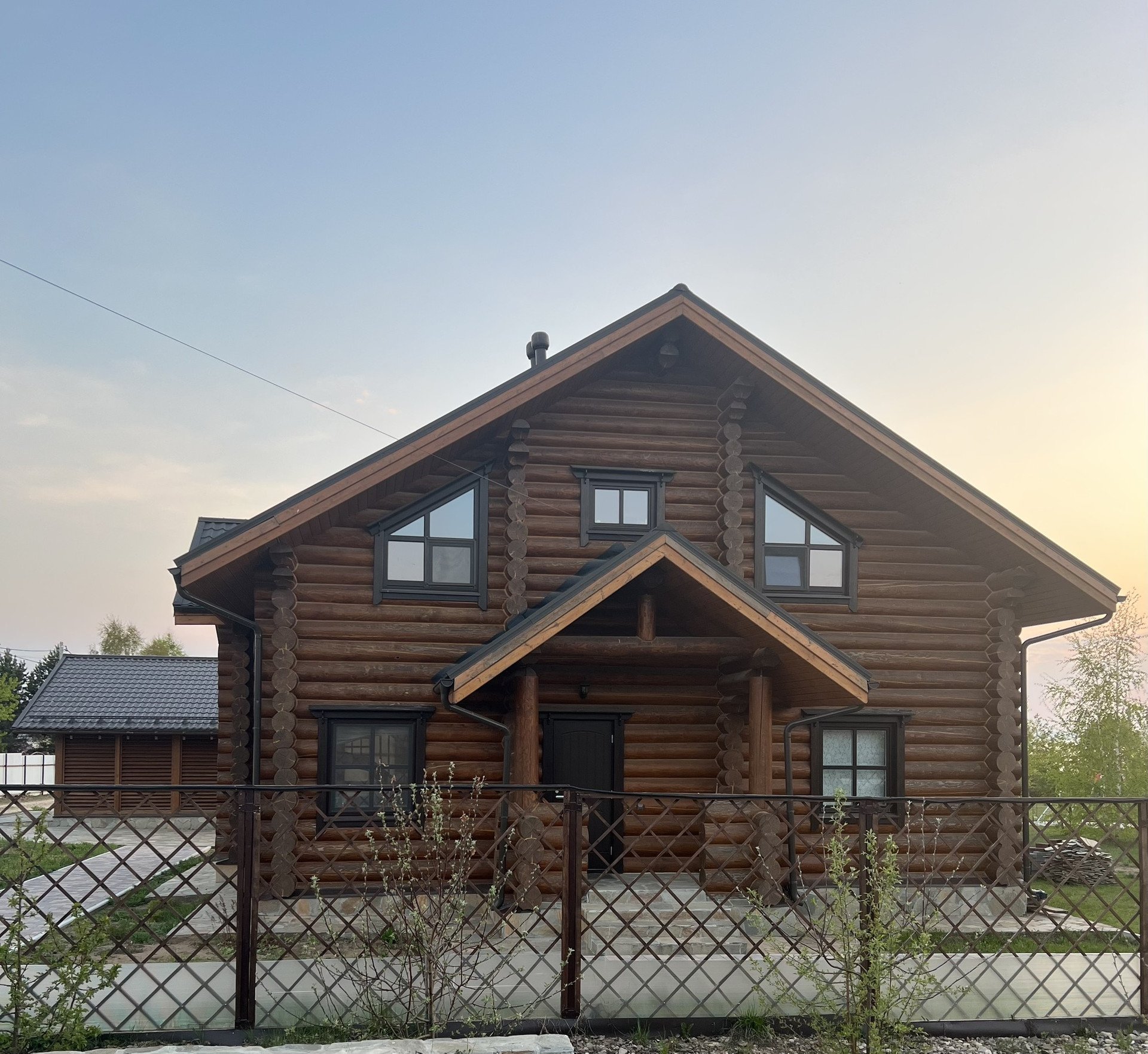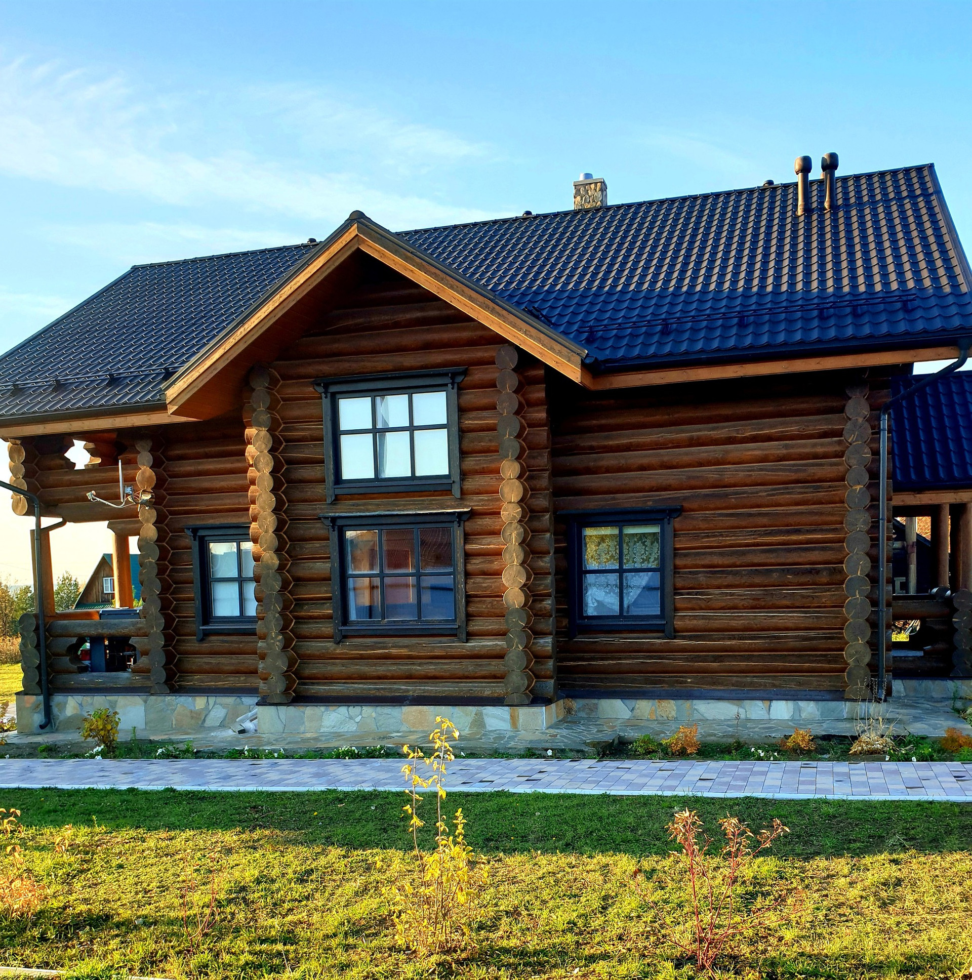 Дом выполнен из калиброванного бревна диаметром 300мм, снаружи и изнутри все межвенцовые швы обработаны американским герметикой, для отделки использованы только высококачественные экологичные материалы.