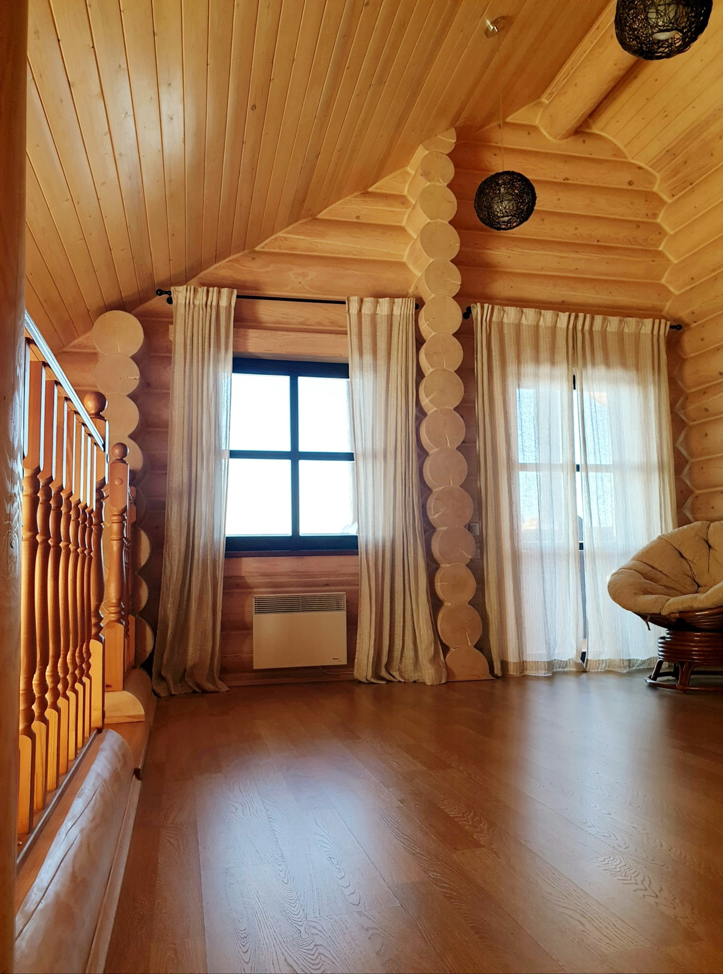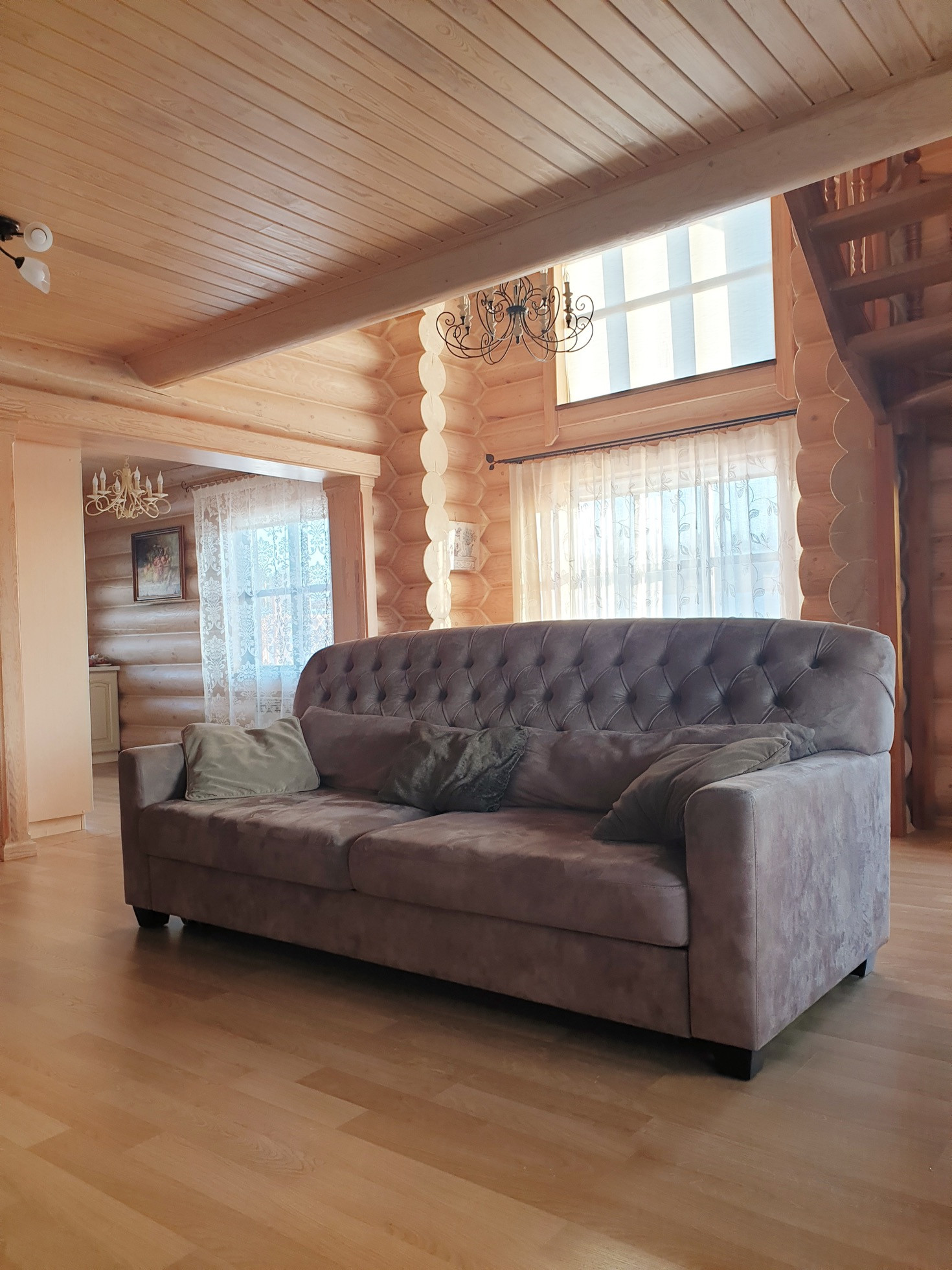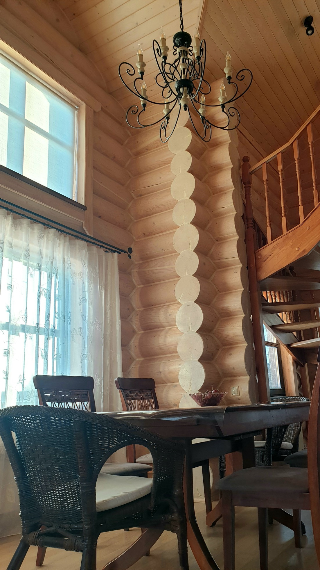 Дом выполнен из калиброванного бревна диаметром 300мм, снаружи и изнутри все межвенцовые швы обработаны американским герметикой, для отделки использованы только высококачественные экологичные материалы.
