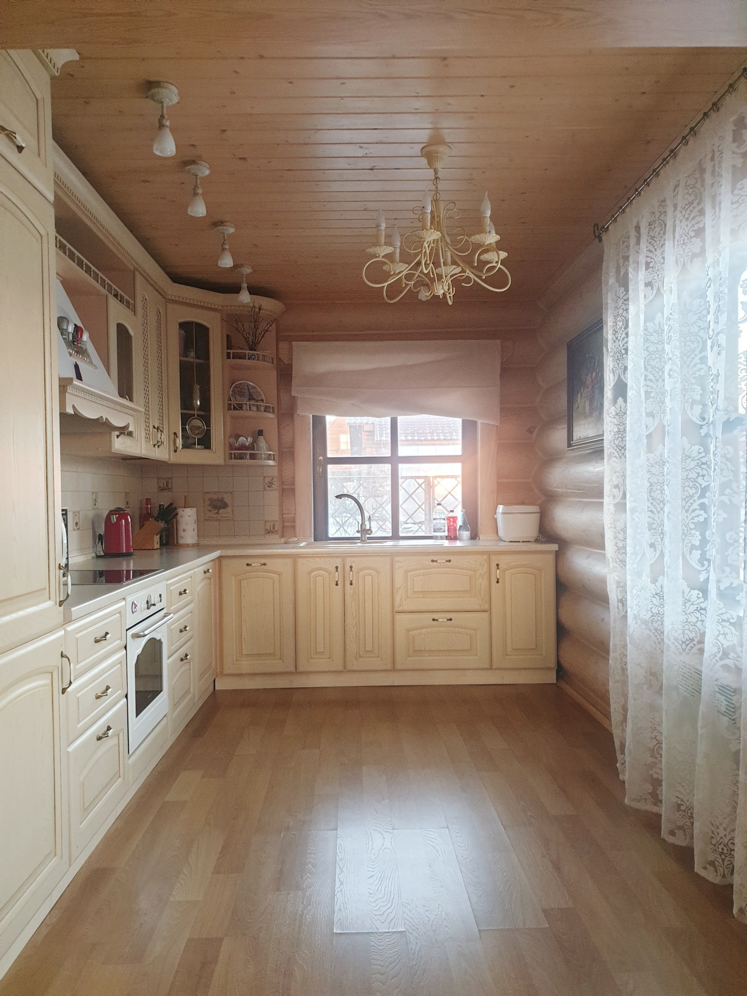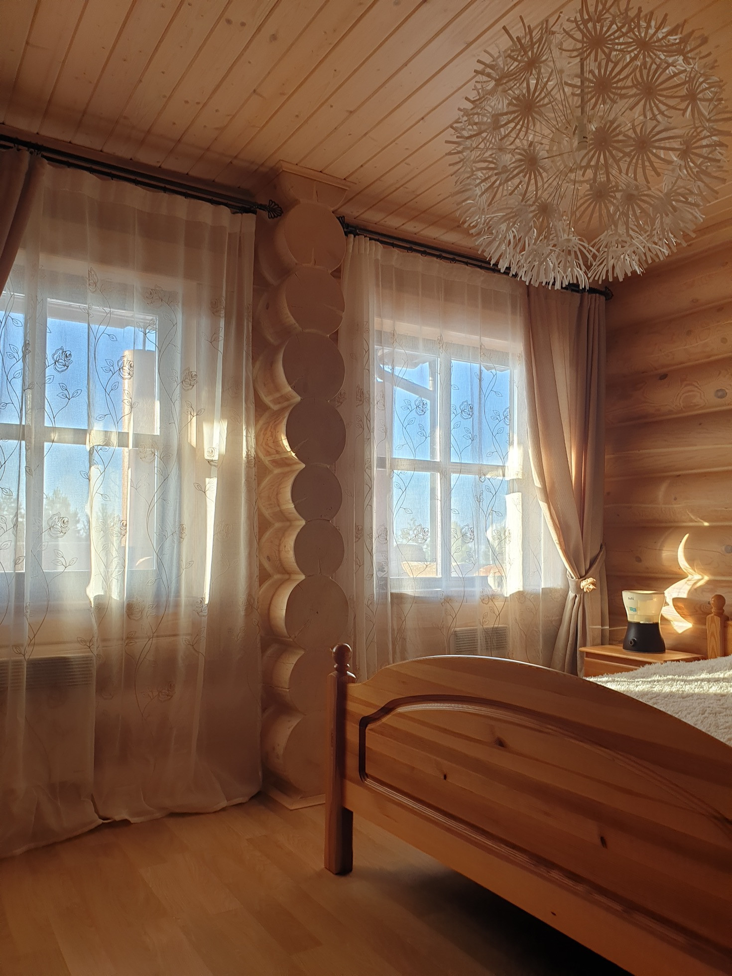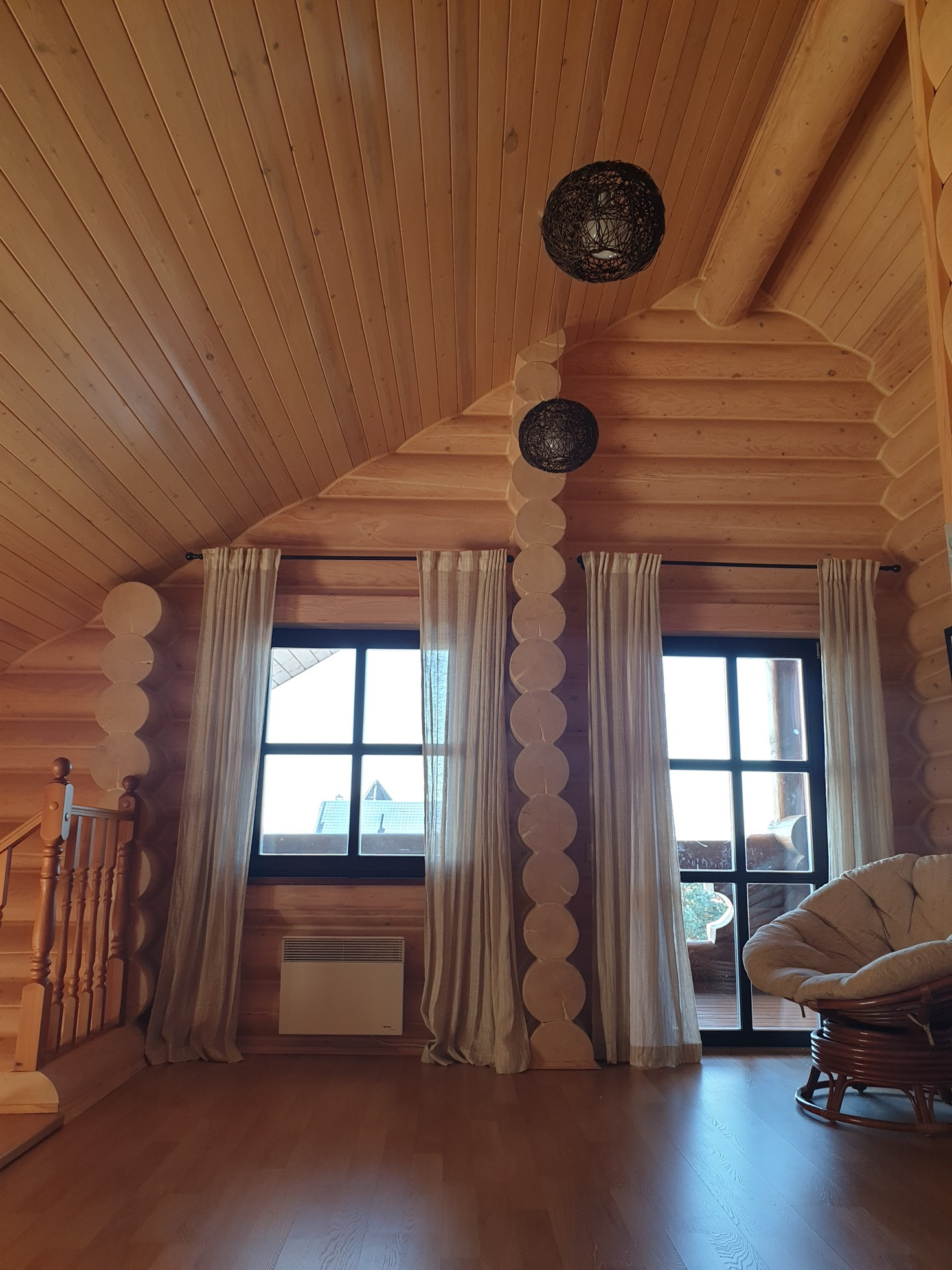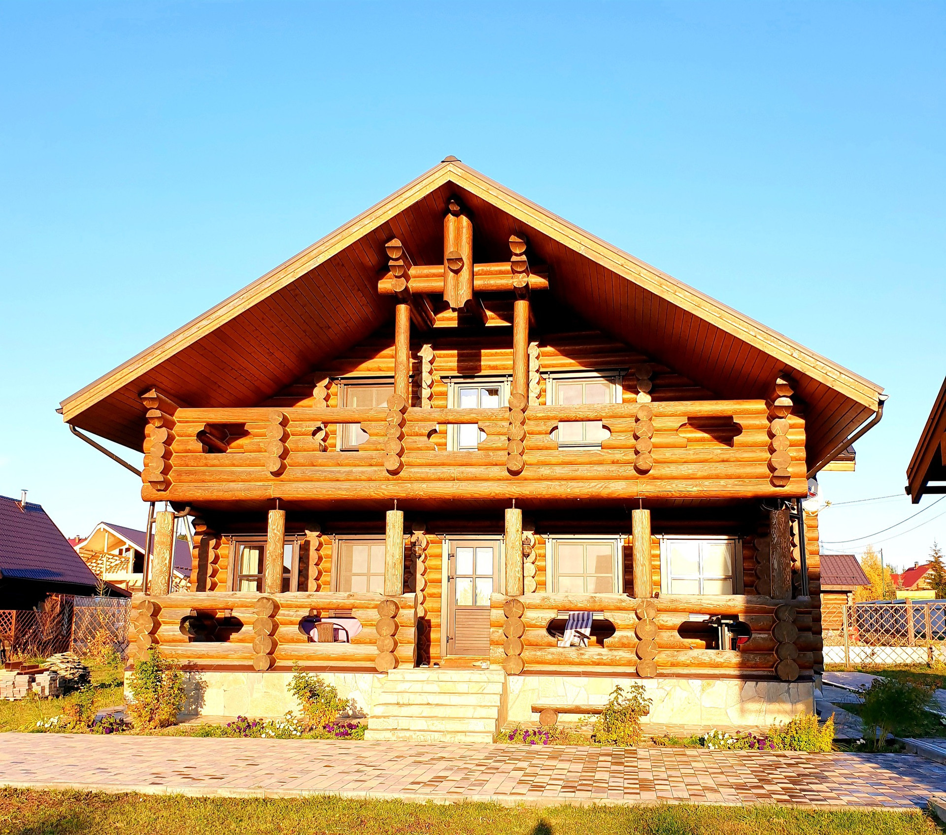 Дом выполнен из калиброванного бревна диаметром 300мм, снаружи и изнутри все межвенцовые швы обработаны американским герметикой, для отделки использованы только высококачественные экологичные материалы.