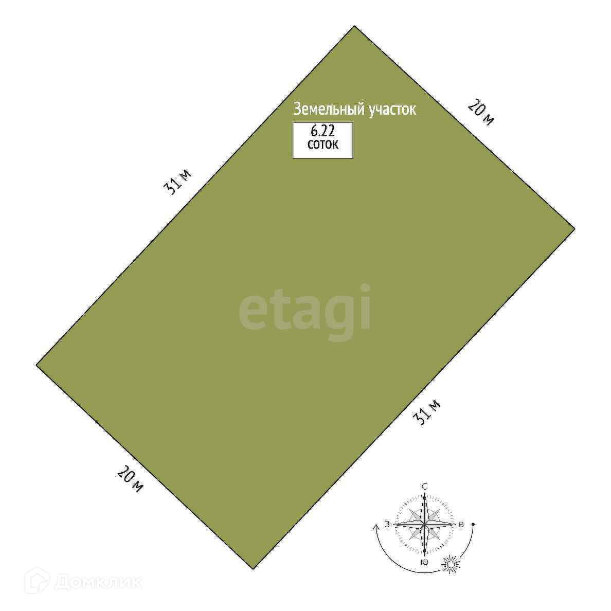 Площадь участка 6.2 сот.