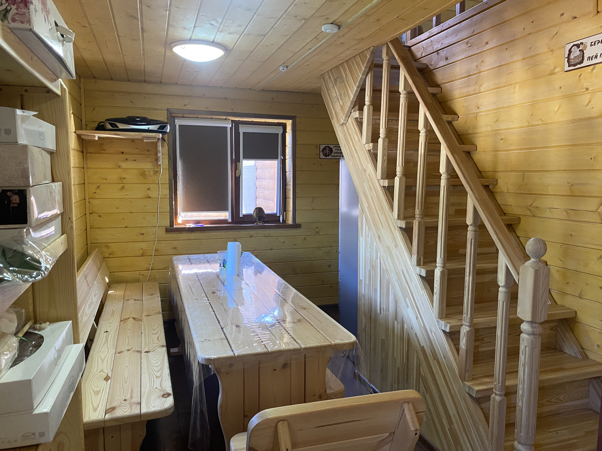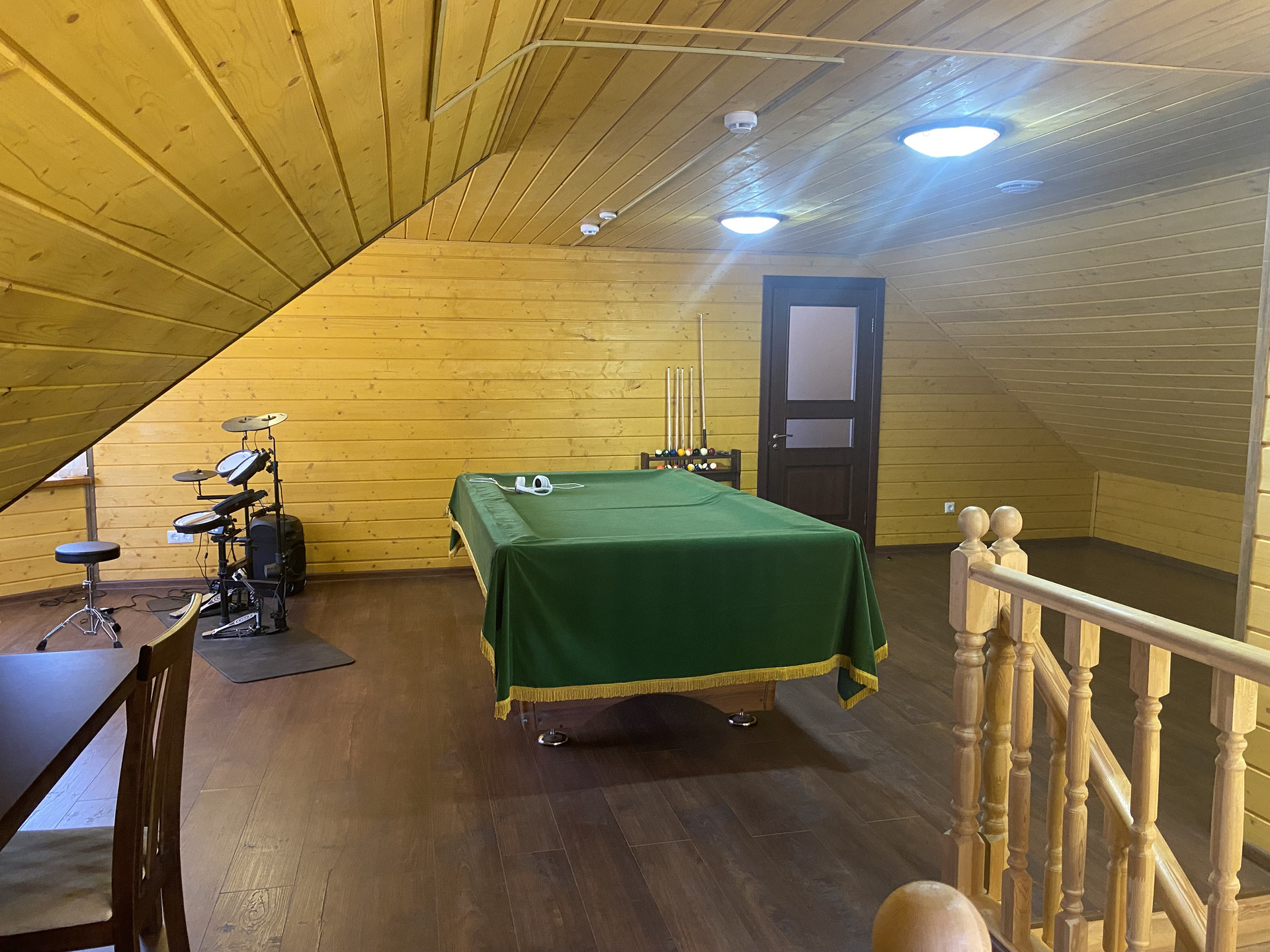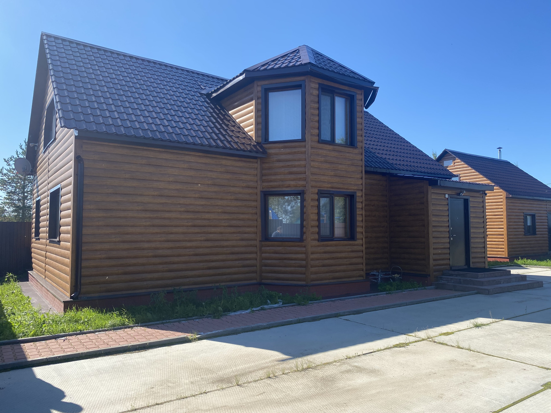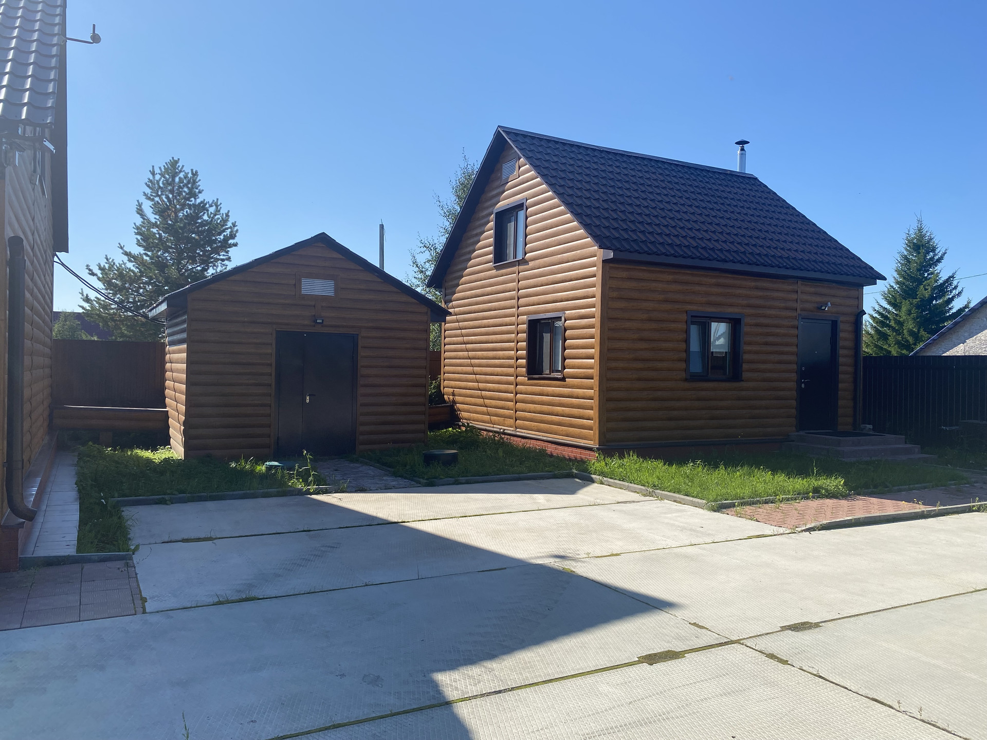 На территории имеется отличный дом из бруса и баня. Подъезд круглый год. (от центральной дороги очень близко).