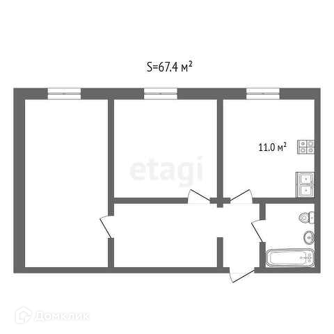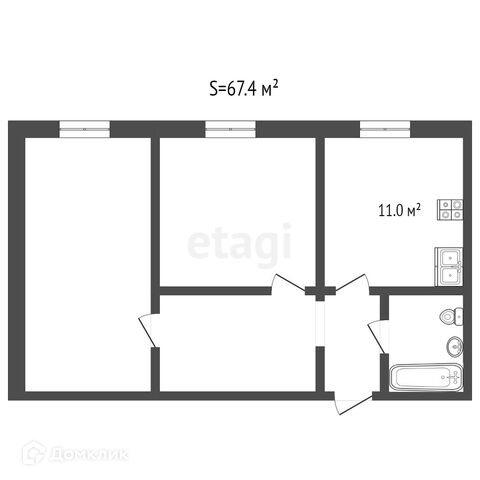 Общая площадь 52.7 м2