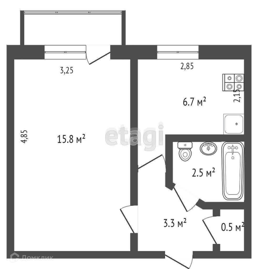Общая площадь 28.9 м2