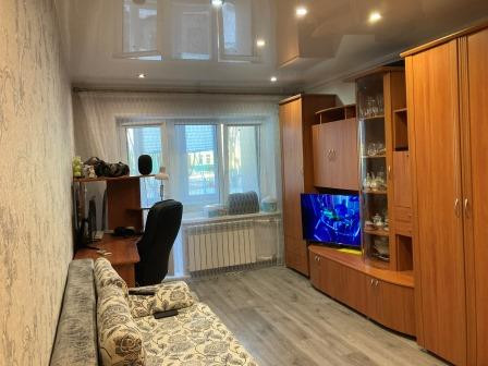 квартира с евроремонтом, стены выровнены, оштукатурены мраморной крошкой, потолки - натяжные, стеклопакеты, балкон с ремонтом и стеклопакетом, санузел совмещенный, сантехника новая, стены выложены полностью кафельной плиткой, межкомнатные двери заменены, новая железная водная дверь. Спальный район, в подъезде дома -свеже выполненный ремонт, чисто и тихо, вежливые соседи. За домом детский сад, в шаговой доступности школа №2,  сеть магазинов, спортивная школа, стадион. торг))))