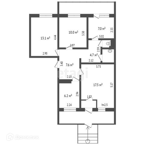 Общая площадь 65.4 м2