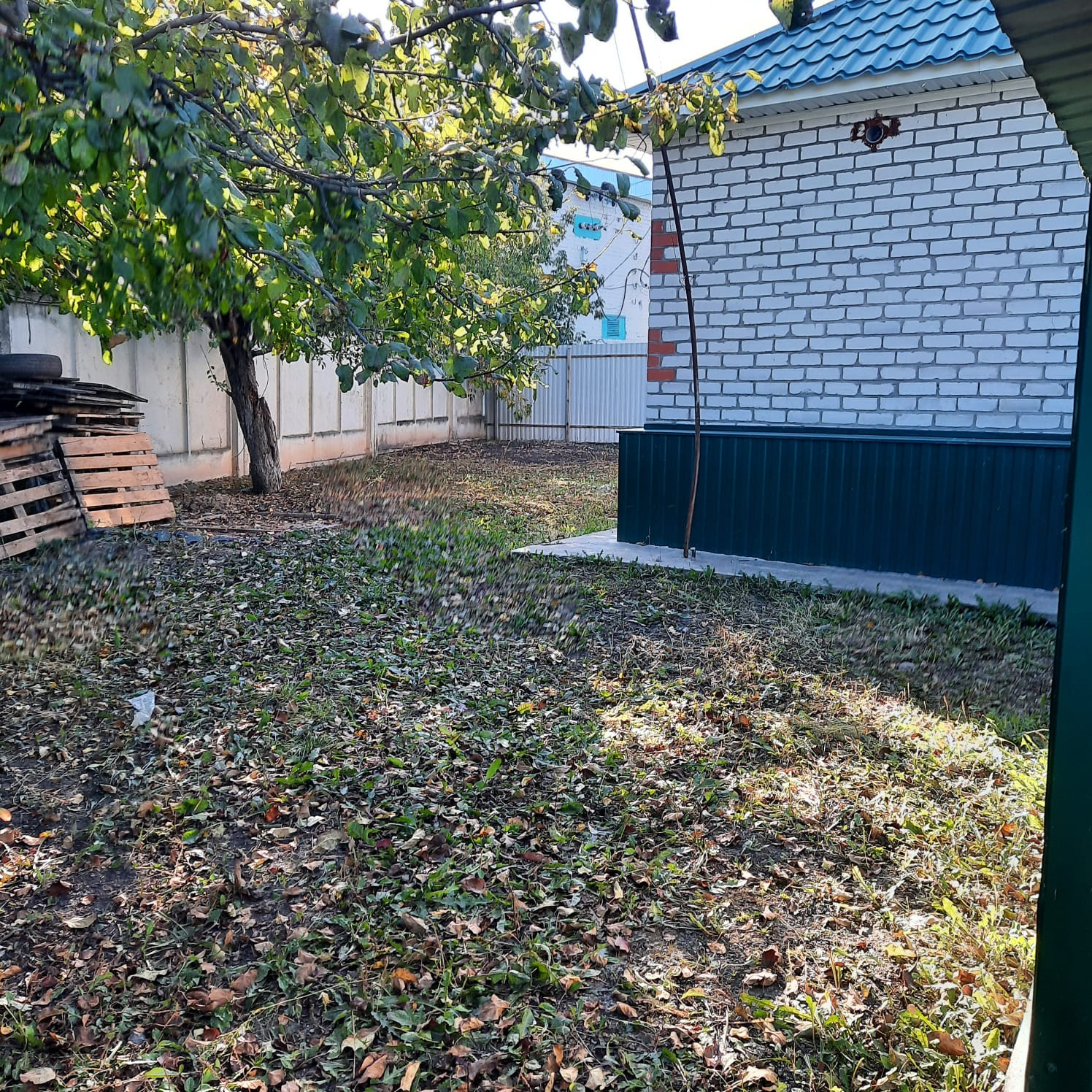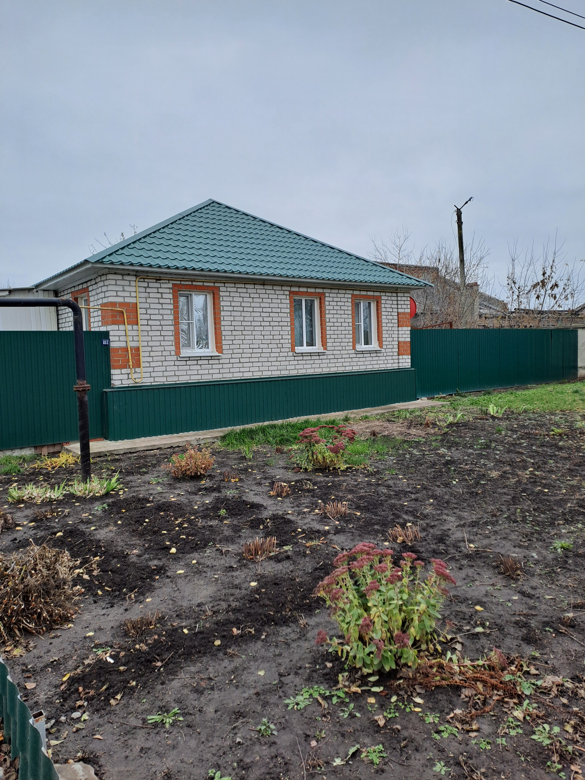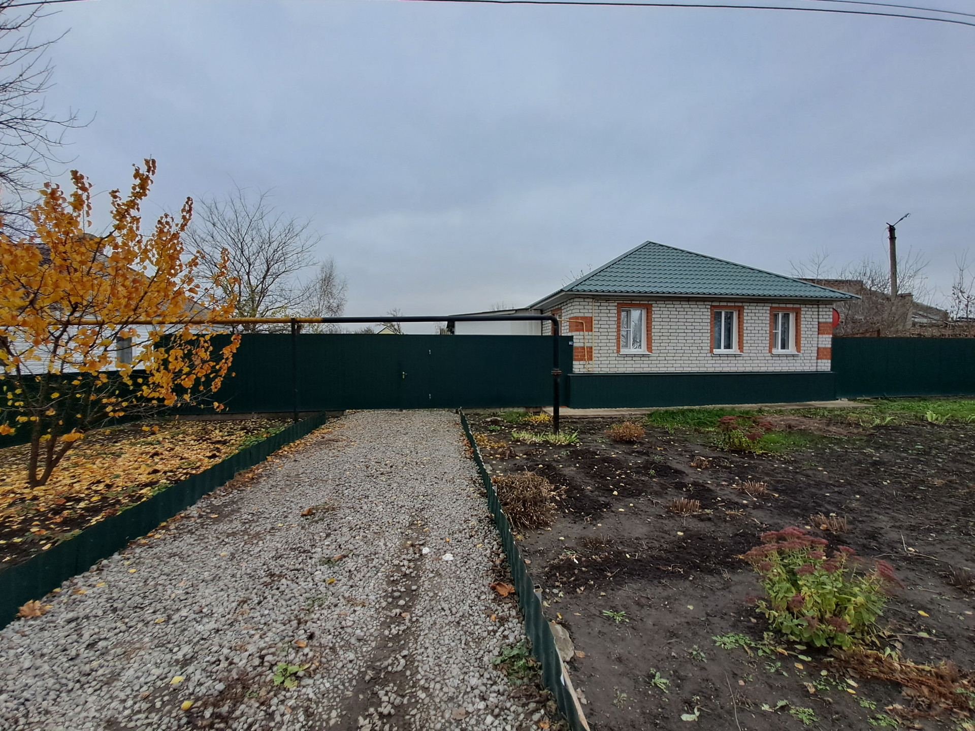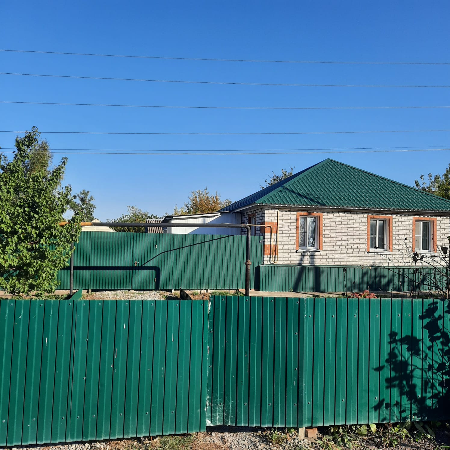 Дом огорожен современным забором из металлопрофиля.