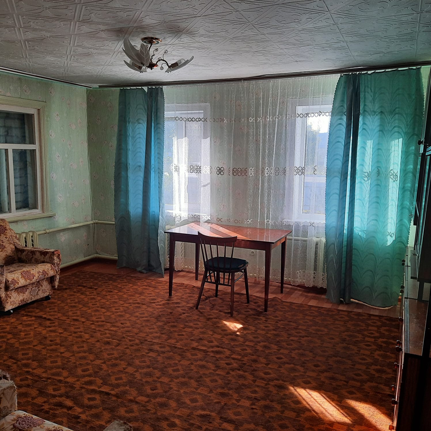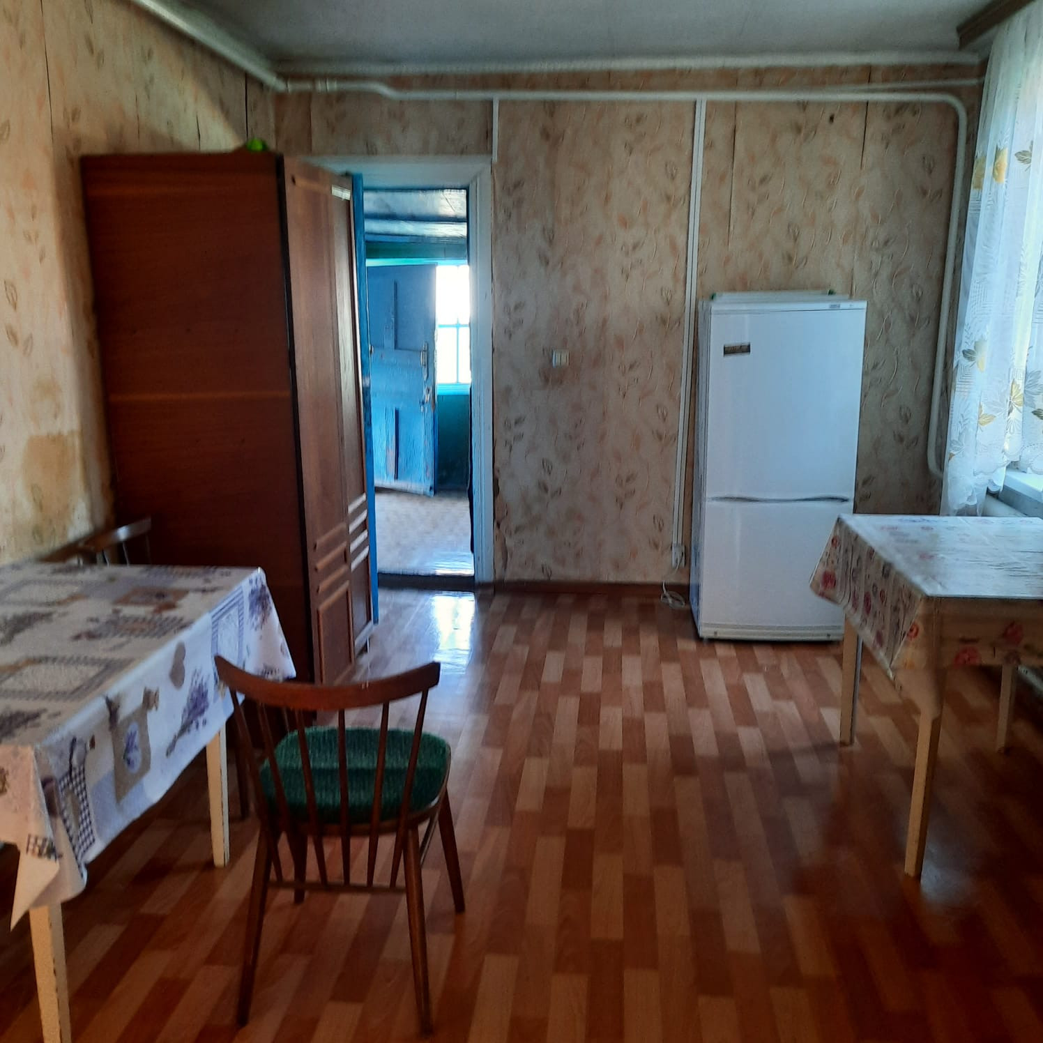 Дом просторный и подходит для проживания большой семьи. Состоит из 4 комнат, санузла, большой кухни, прихожей, веранды, погреба. Вход в дом укрыт навесом.