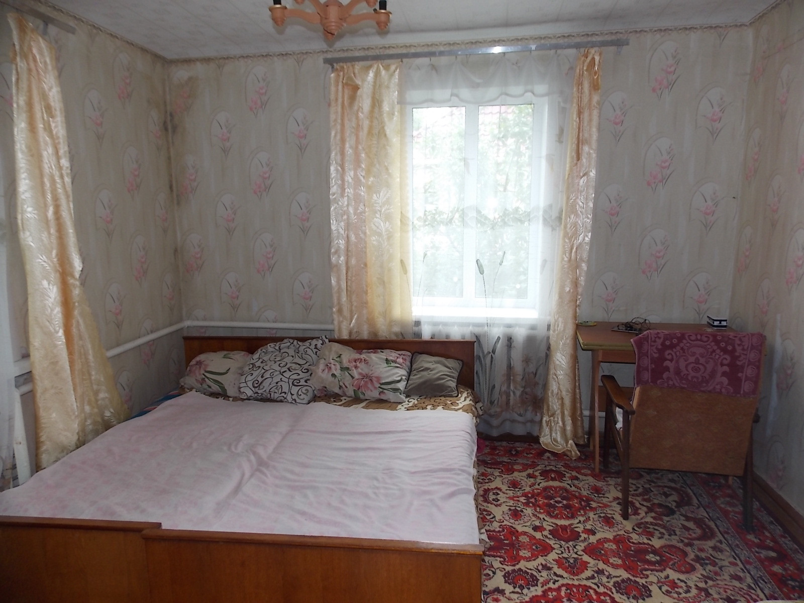 Добротный кирпичный дом (1983 г.п.), крыша шифер,  ОП -75,2кв.м, участок 6 соток, все удобства. В  доме  три  жилые комнаты(11,4/ 21,0/ 10,9 кв.м), кухня- 10,9 кв.м., прихожая(4,7), санузел совмещенный (3,4), коридор (8,2), кладовая (4,7), холл. Пристройка (7,2). Индивидуальное газовое отопление, центральное водоснабжение, местная канализация (септик).  Окна стеклопакеты,  выходят на восточную, южную и западные стороны, полы деревянные (линолеум), потолки деревянные h-2,3 м. Все приборы учета. Дом расположен в спокойной части города (в зоне льготного социального статуса).