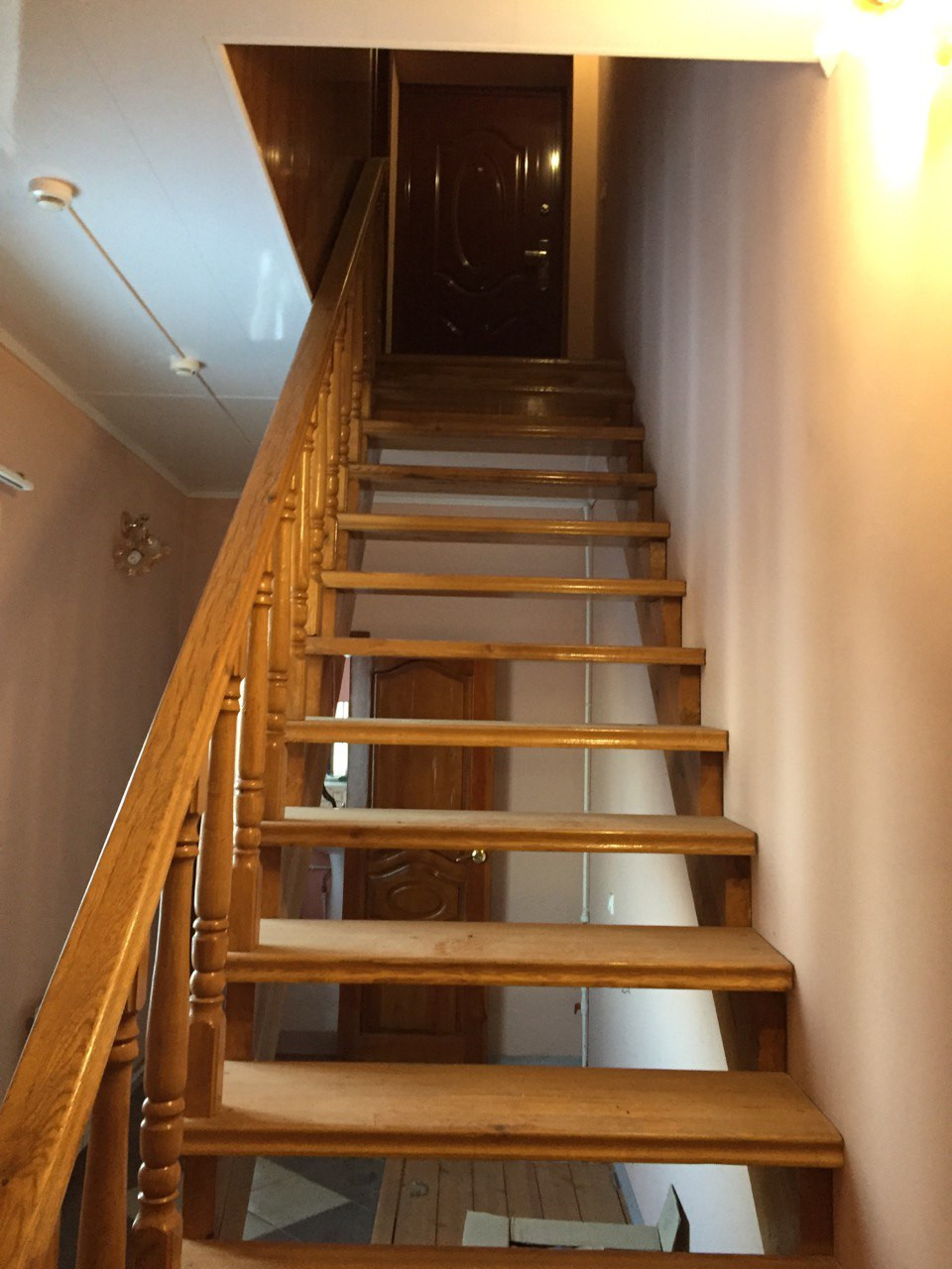 Лестница на второй этаж сделана из дуба.
