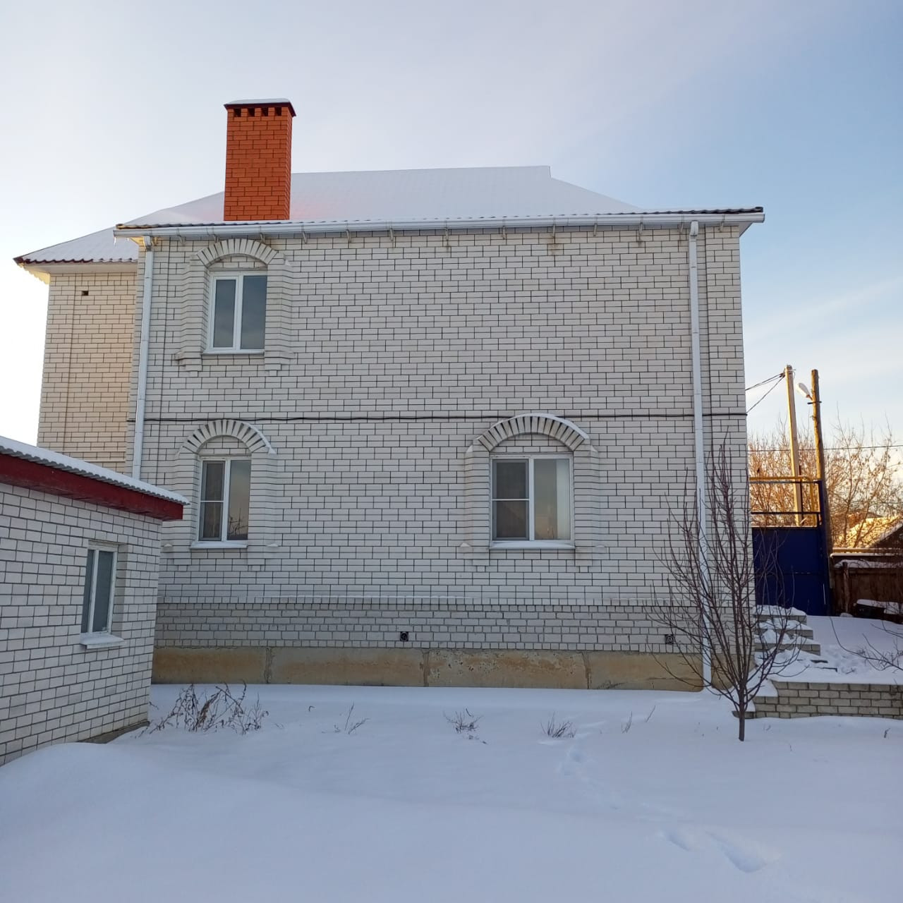 Материал стен: Газоселикат + облицовочный белый кирпич, перекрытие между 1 и 2 этажом железобетоннное.