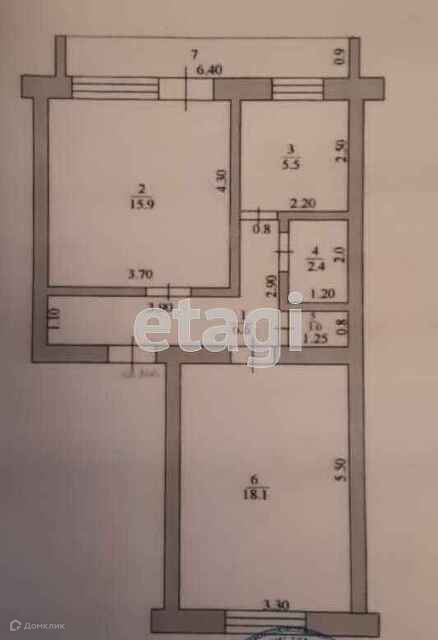 Общая площадь 49.5 м2