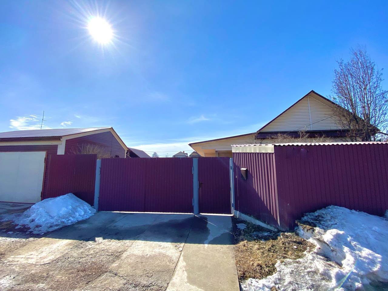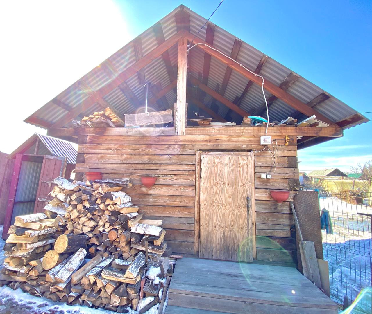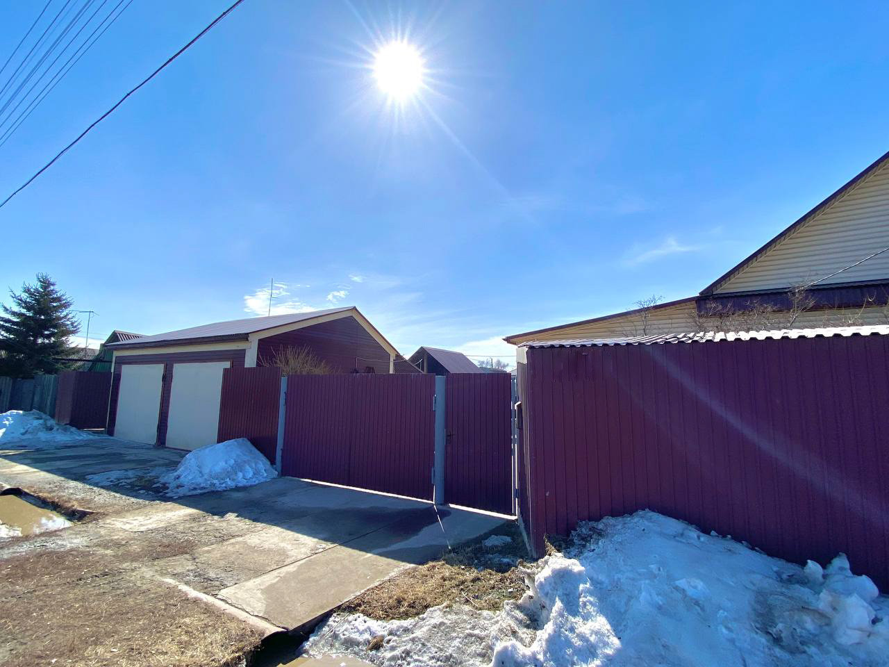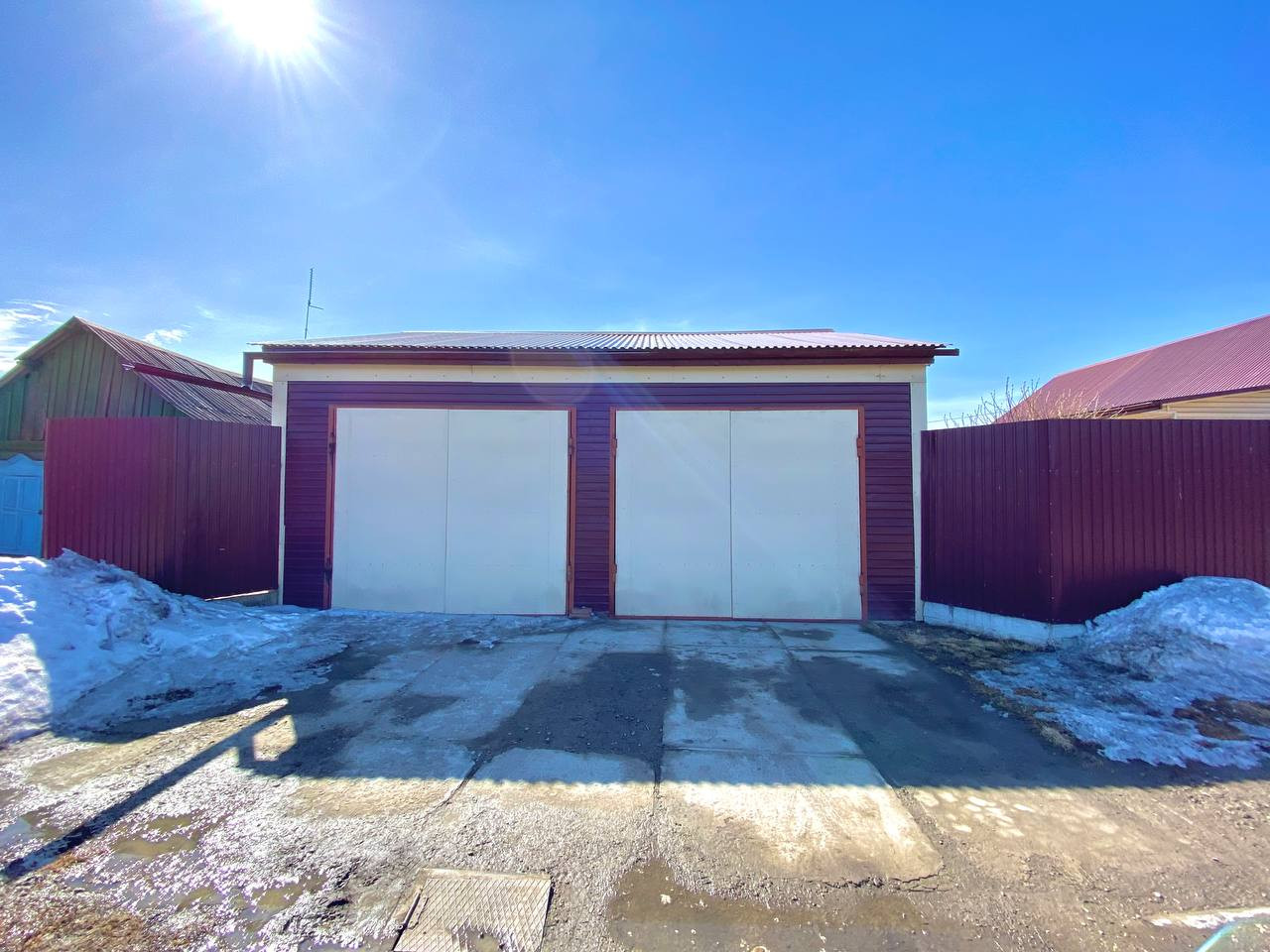 Гараж с большим подвалом на две машины. Баня, беседка, мангальная зона. Теплица из поликарбоната. Забор из металлопрофиля на фундаменте.