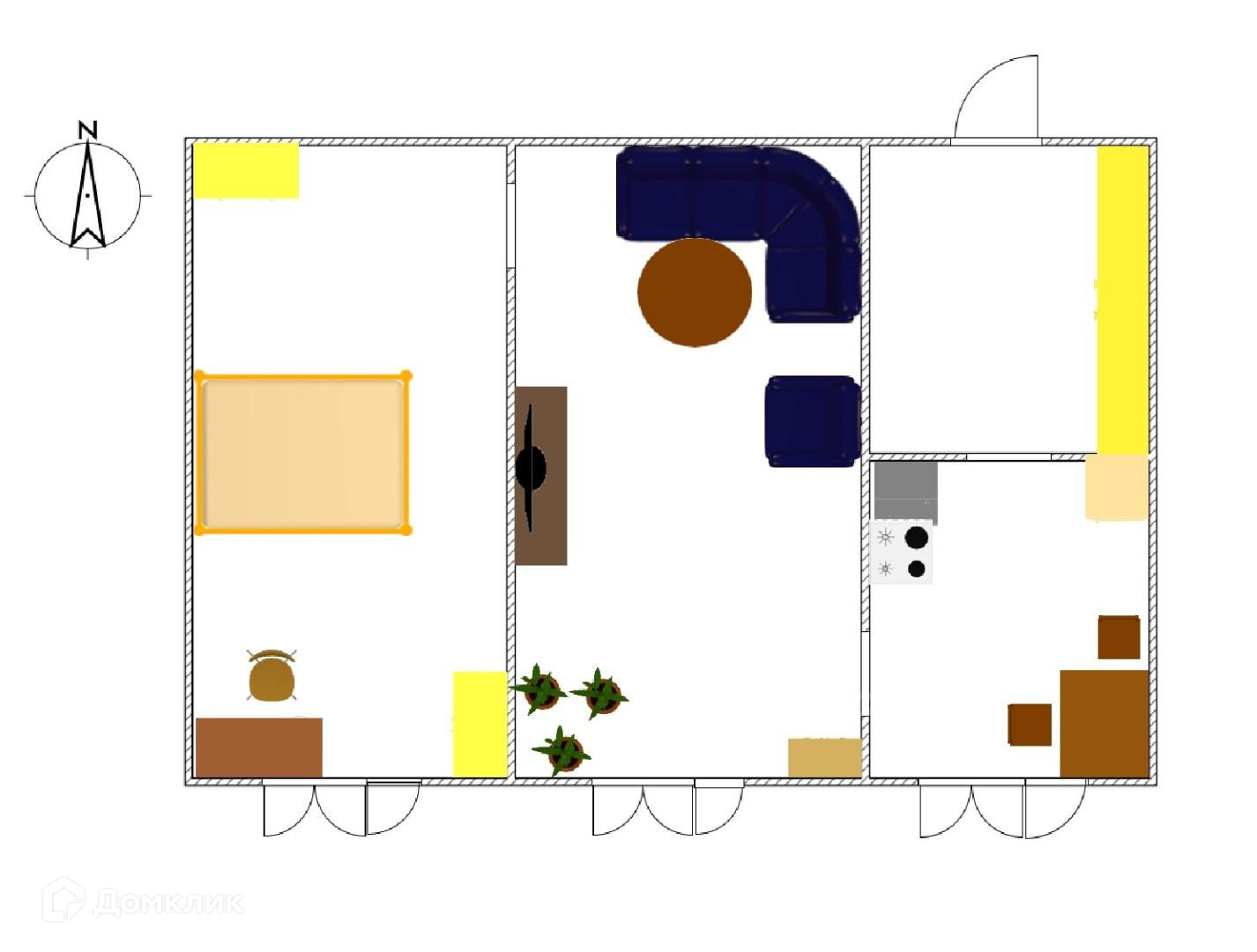 Жилая площадь 21.5 м2