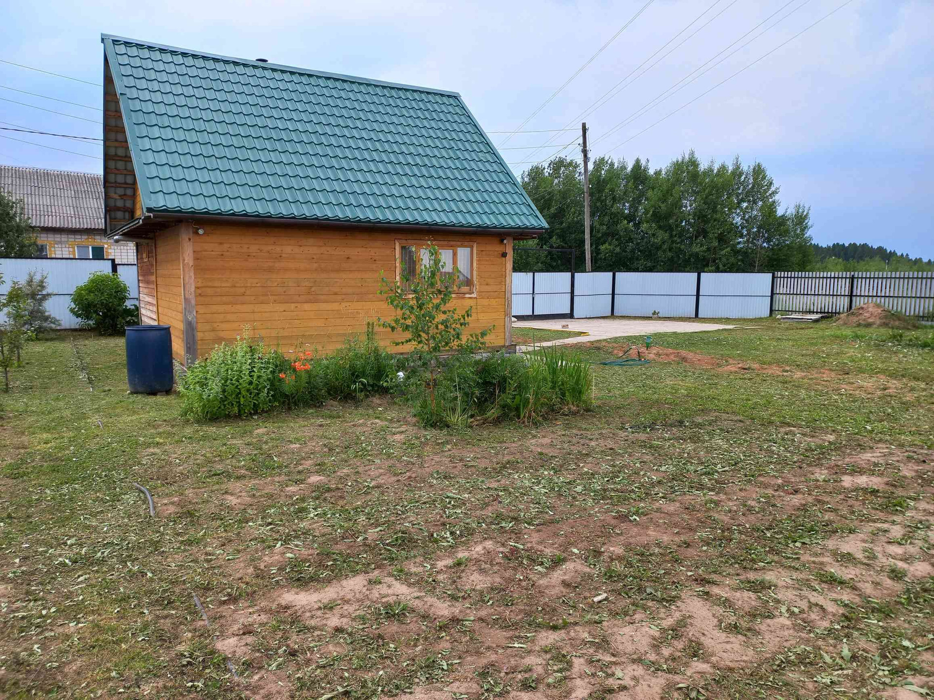 отличный участок рядом с Камой. построена баня-гостевой дом 6х6. 1эт. парилка, комната отдыха, кухня. 2эт мансарда утеплена комната 3х5. на участке имеется дровеник, хоз постройка(сарай с навесом), теплица. электричество 380. вода зимняя централ разведена. газ по границе . оставлено место для  постройки основного дома