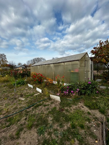 Участок ухожен. Теплица из поликарбоната с металлическим каркасом.