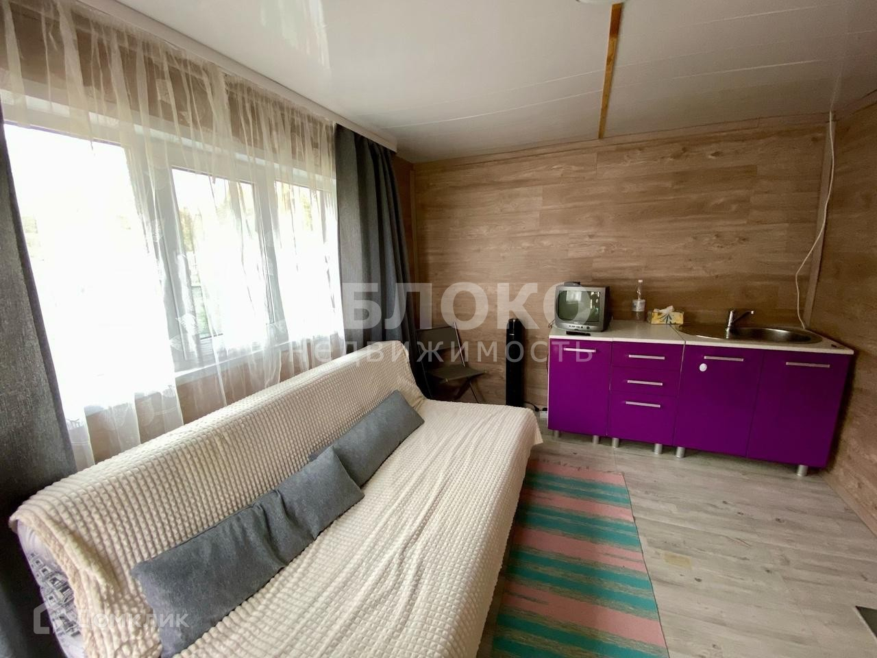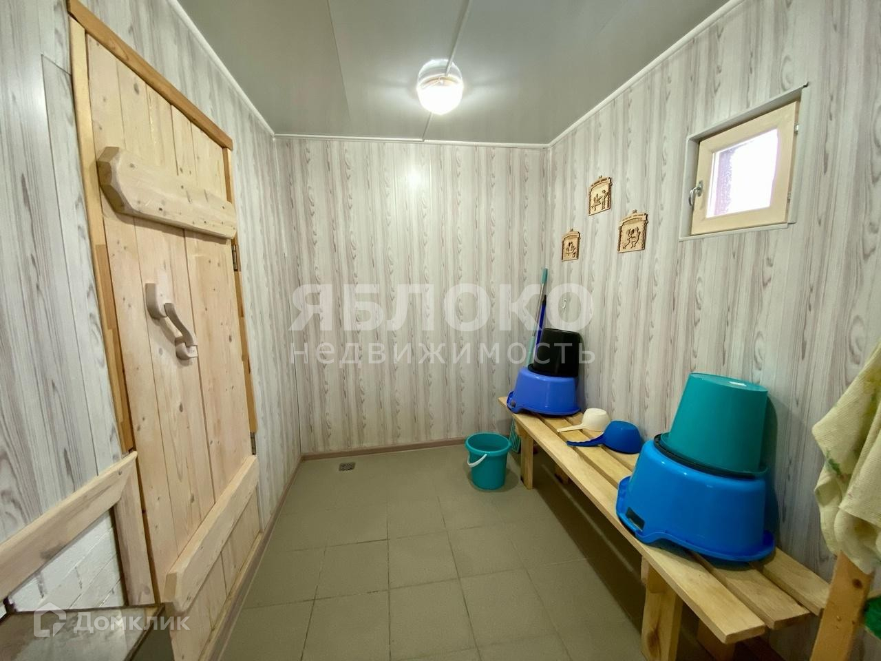 - Баня 24 кв.м, помывочная (есть теплый пол) и парилка раздельно. При выходе из бани помост с бассейном. Банная печь "Горыныч" на три отделения. В баню проведен водопровод, но не подключен