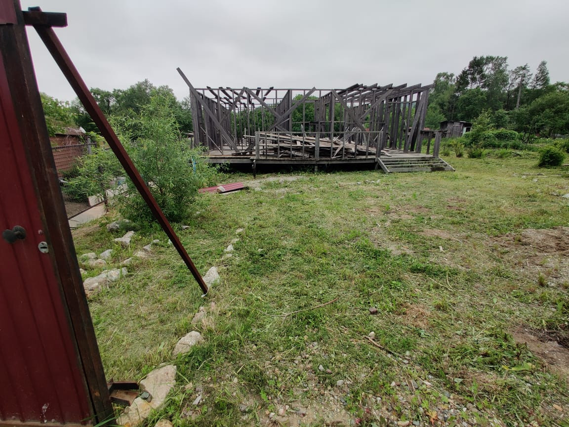 На участке недостроенный каркасный дом более 100 м2