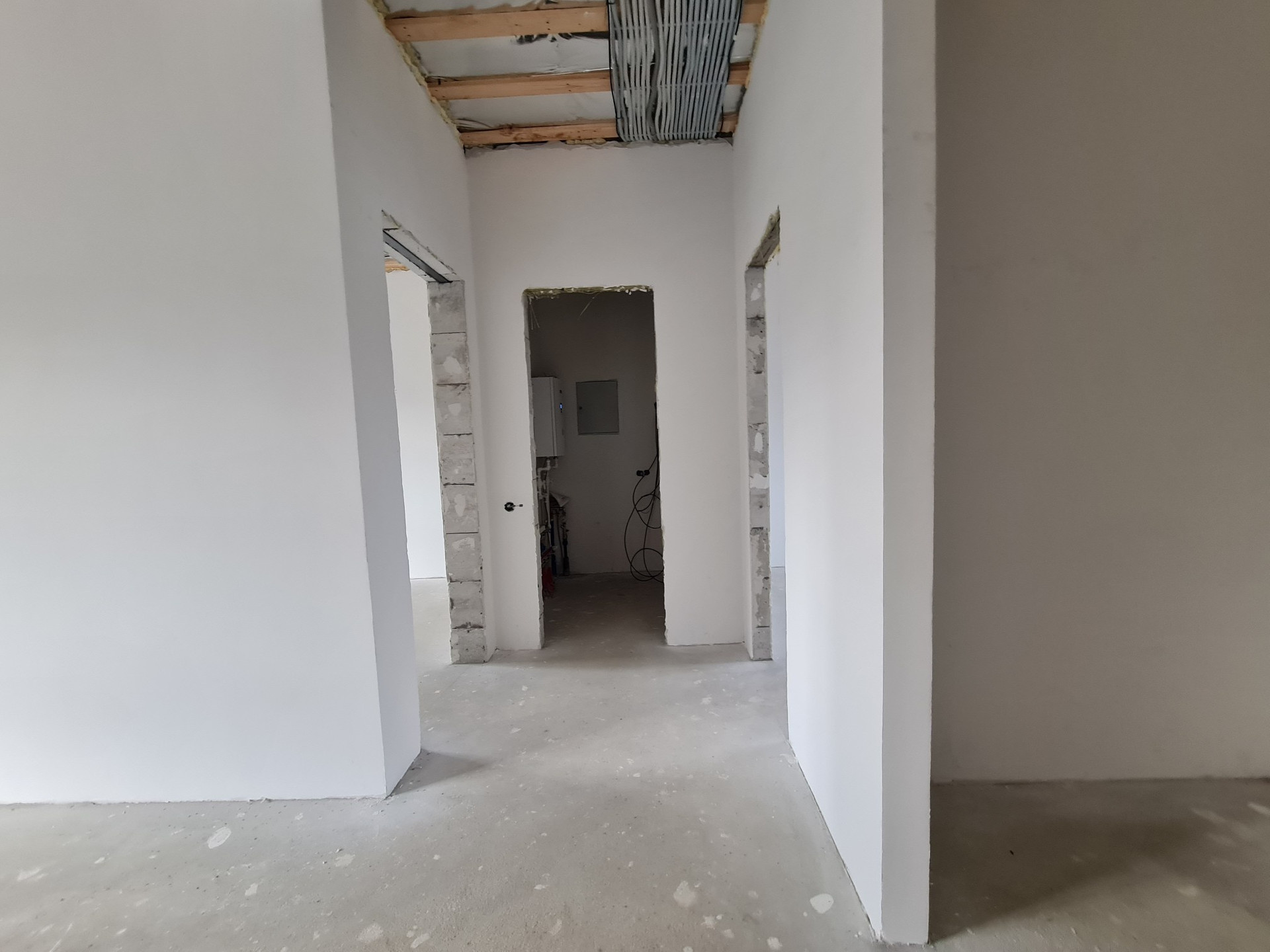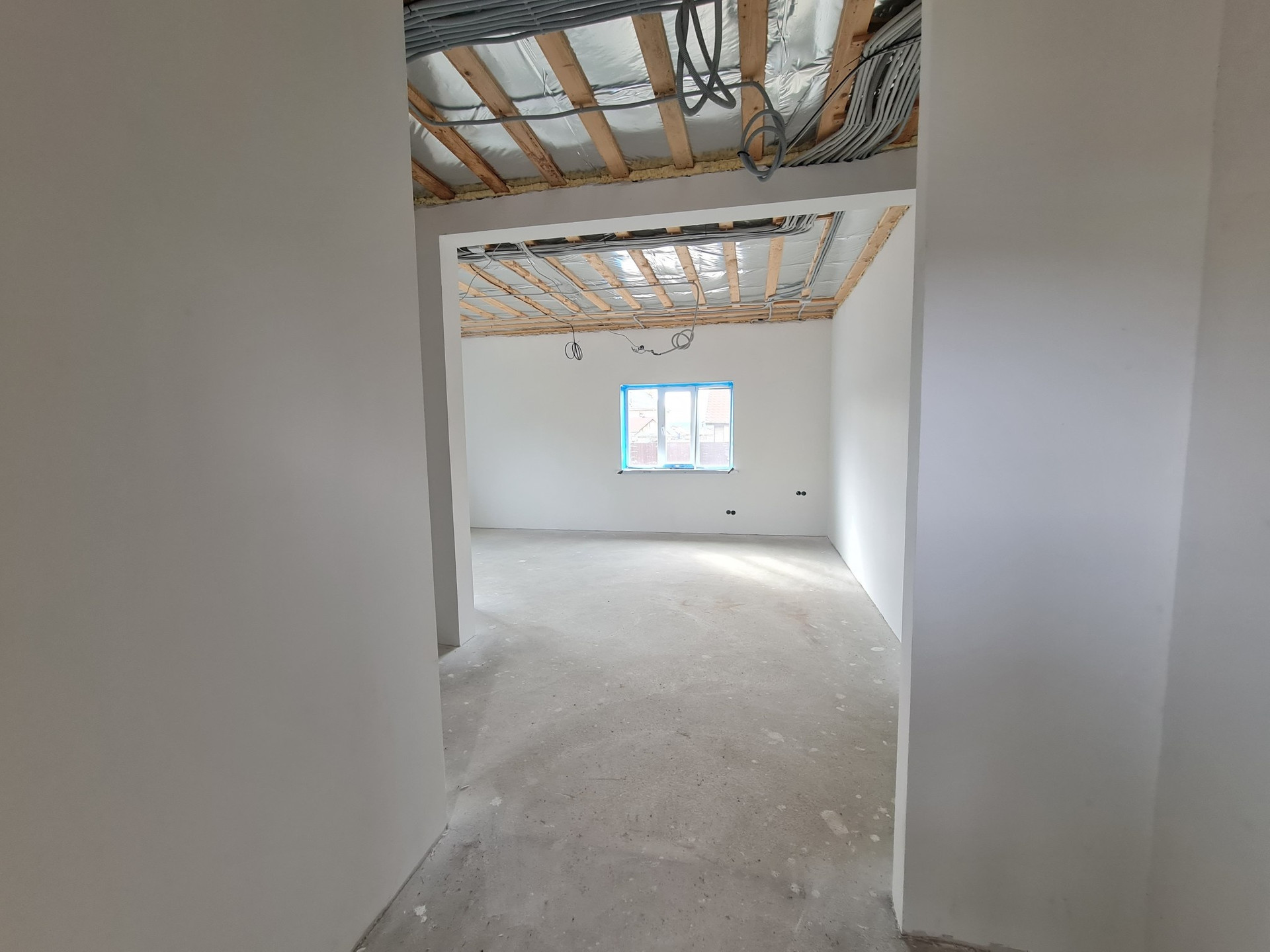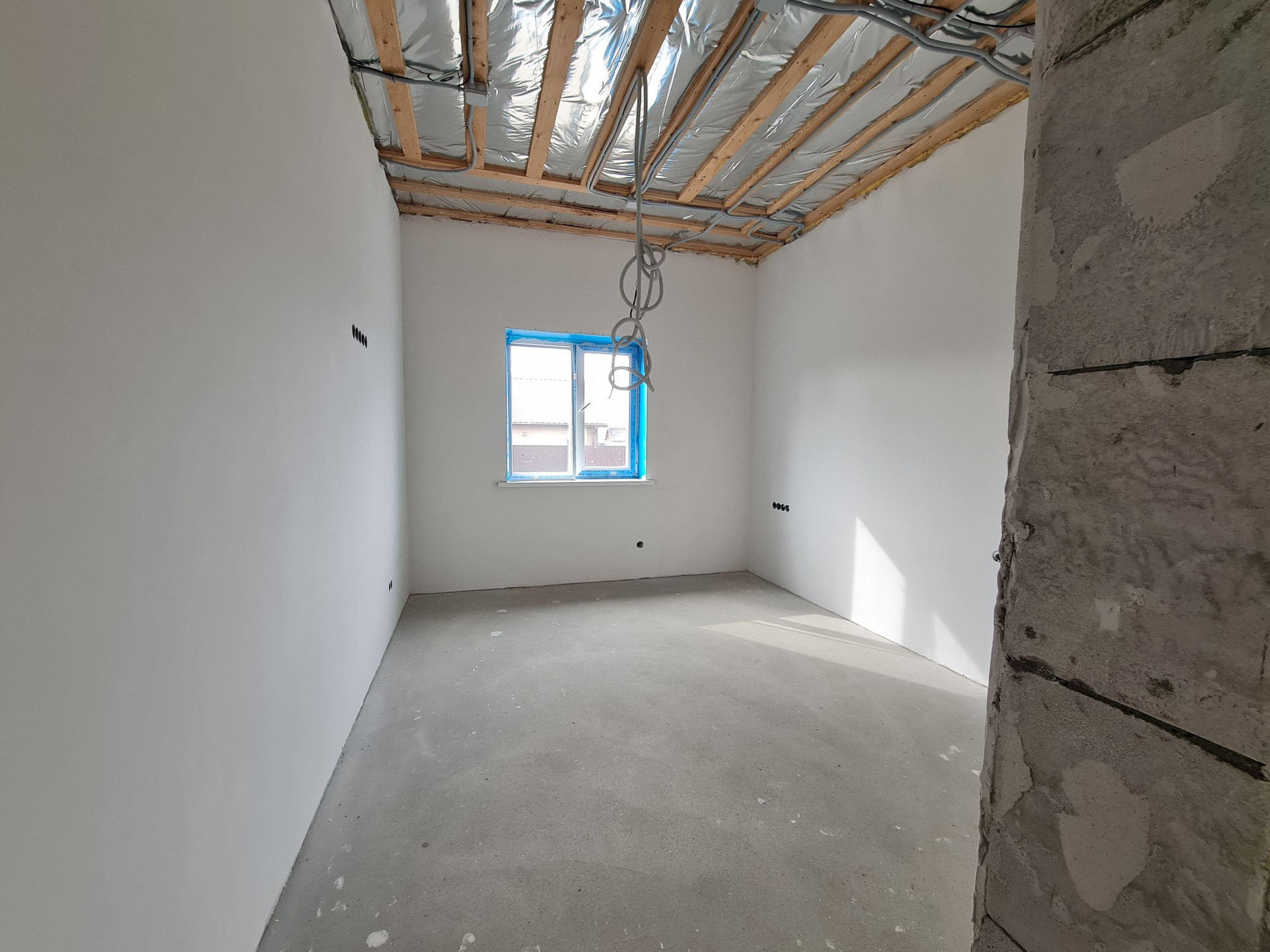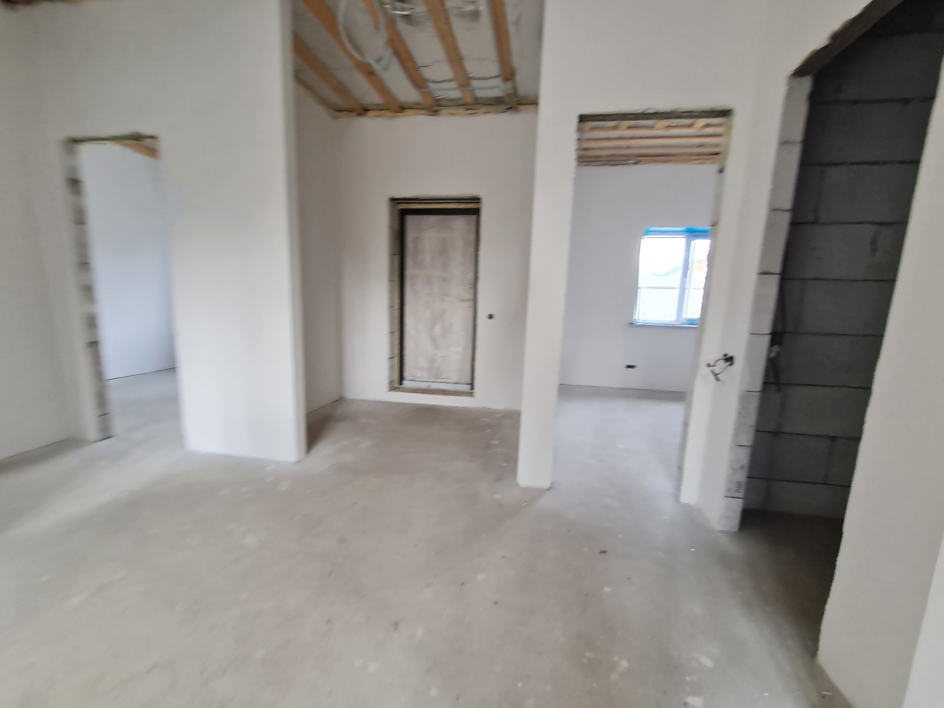 - Стены внутри оштукатурены по сетке гипсовой смесью и отшпаклеваны в два слоя;