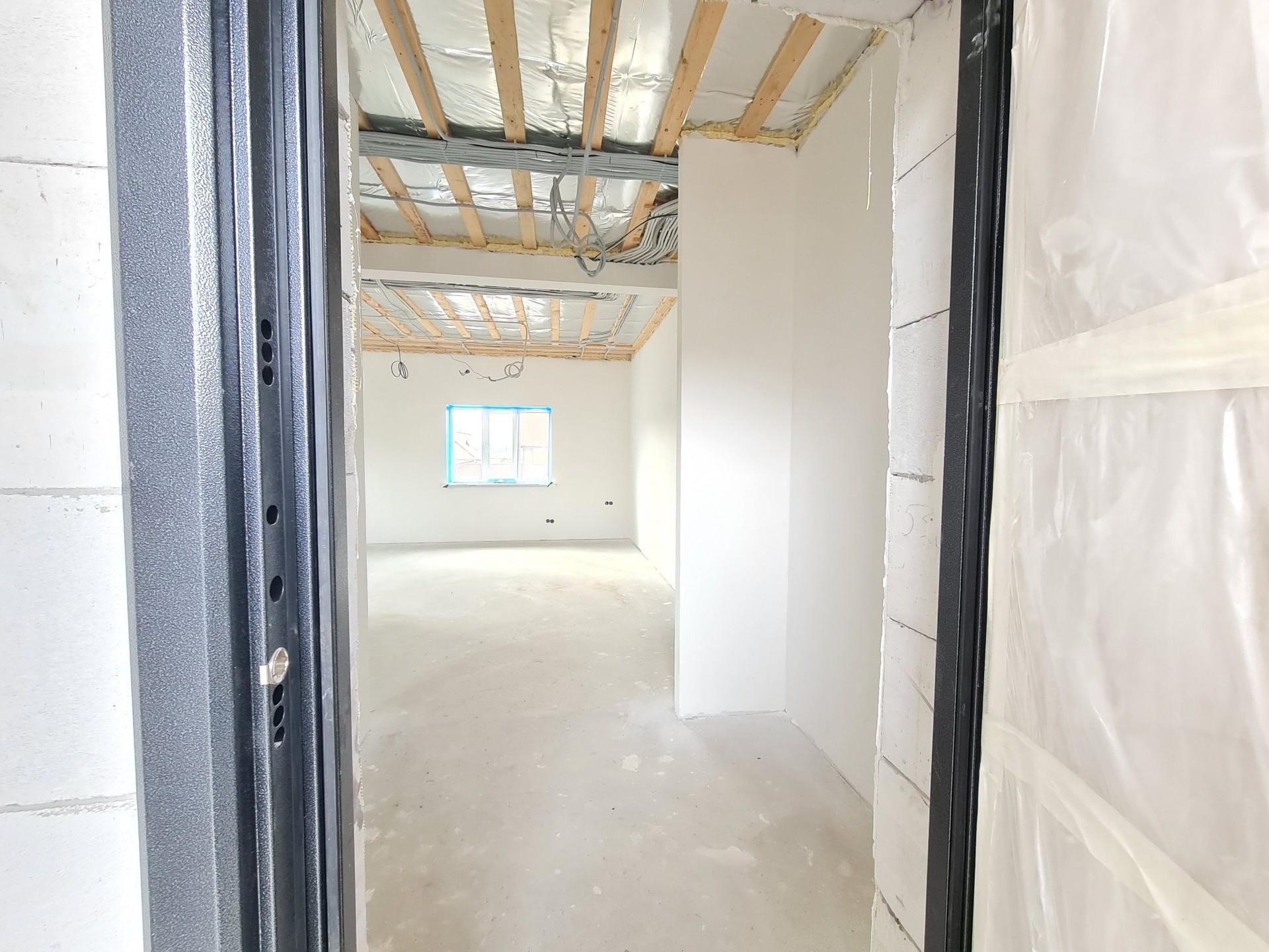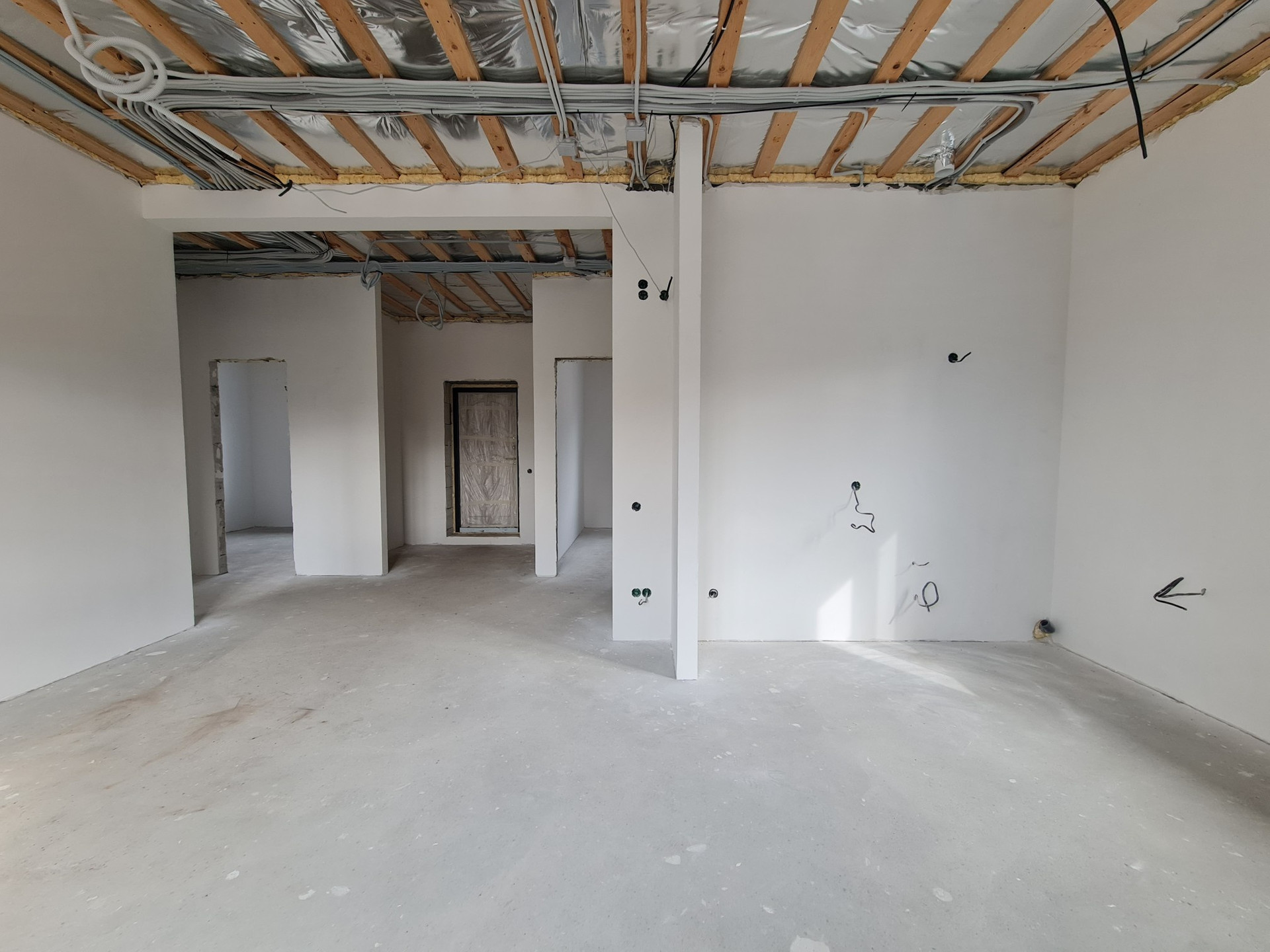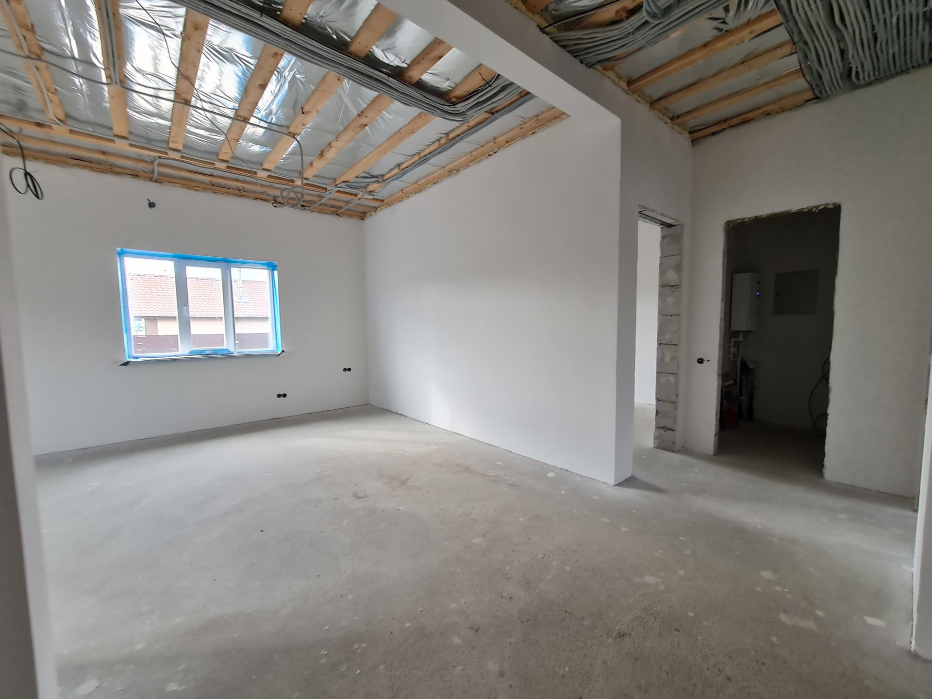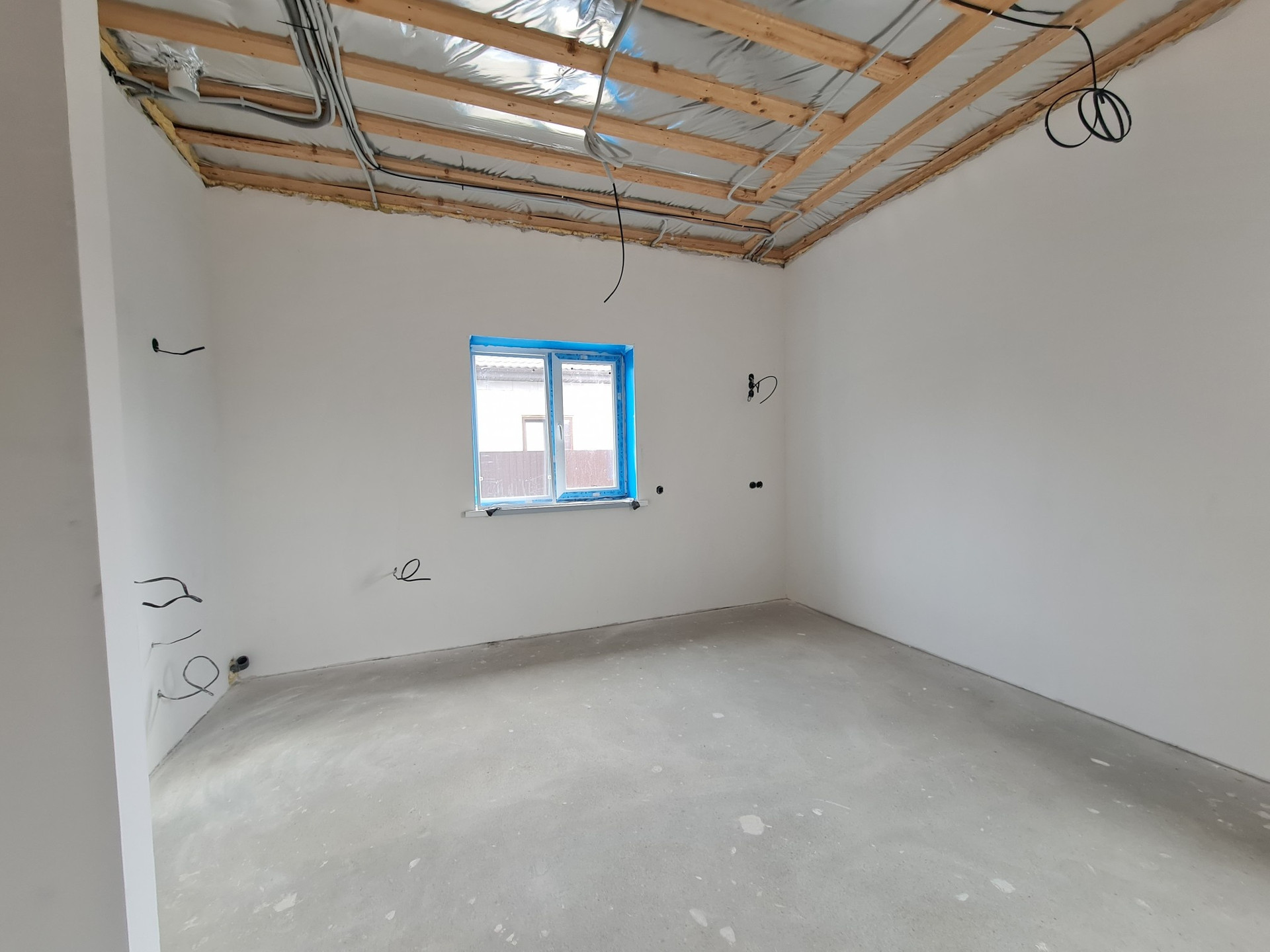 - Стены внутри оштукатурены по сетке гипсовой смесью и отшпаклеваны в два слоя;