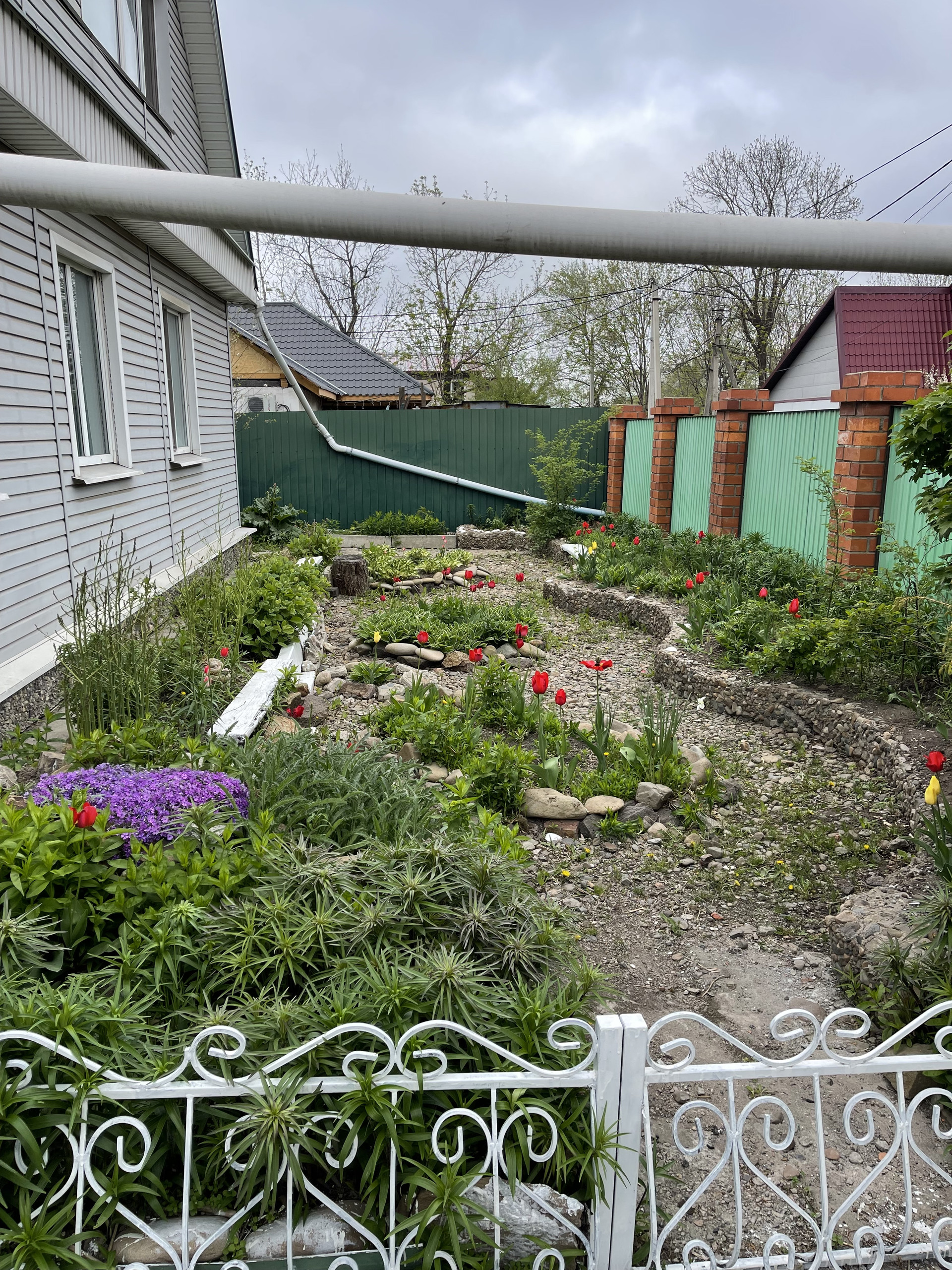 На территории участка находятся два каменных гаража, приусадебный участок, цветник.