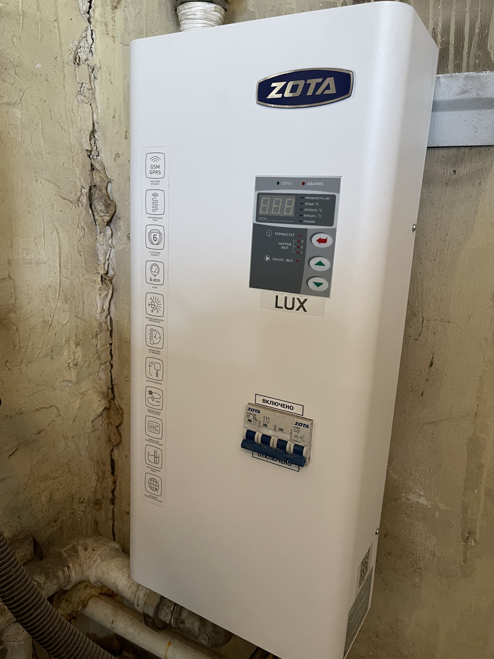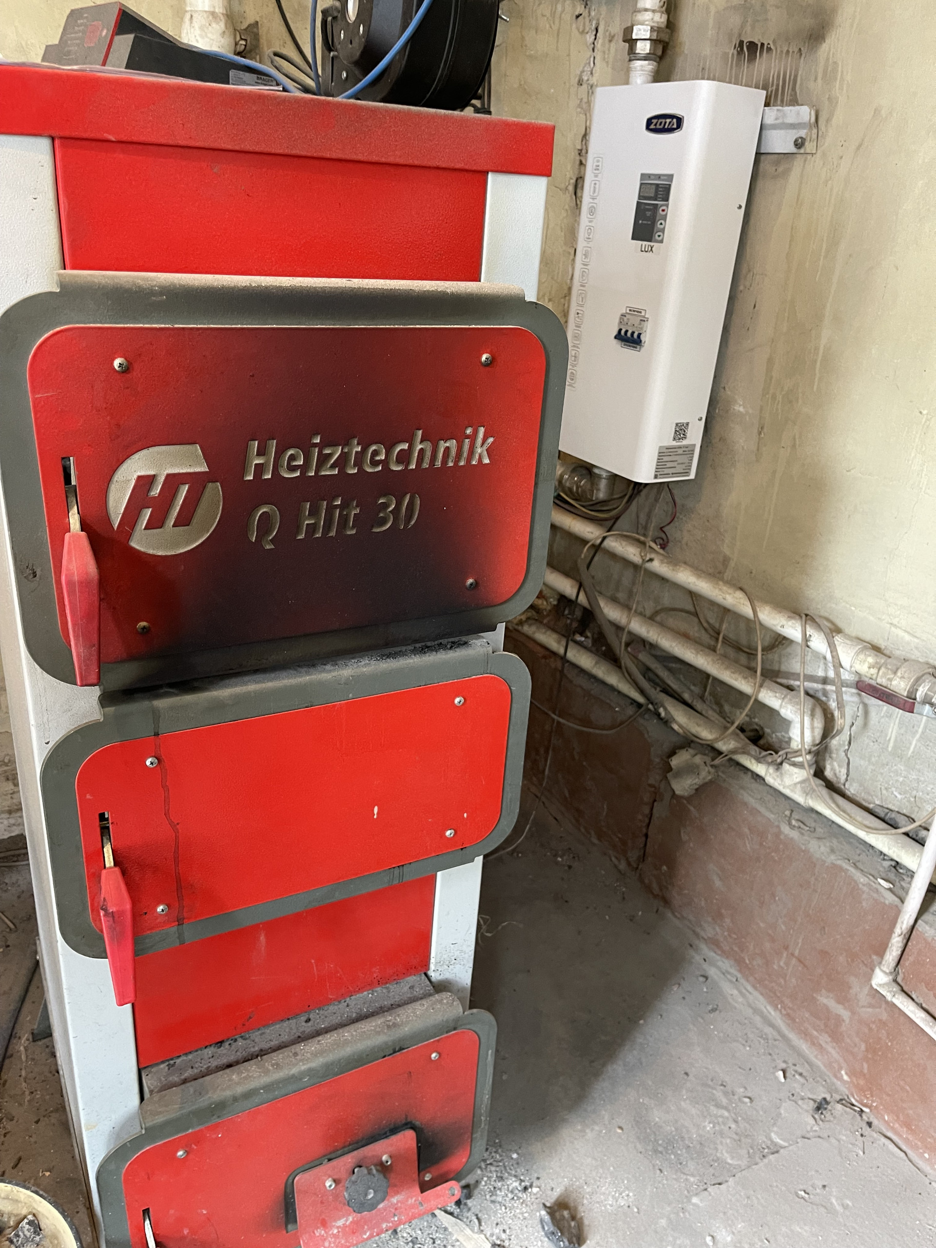 Отопление - смешанное (твердотопливное и электрическое (Zota)).