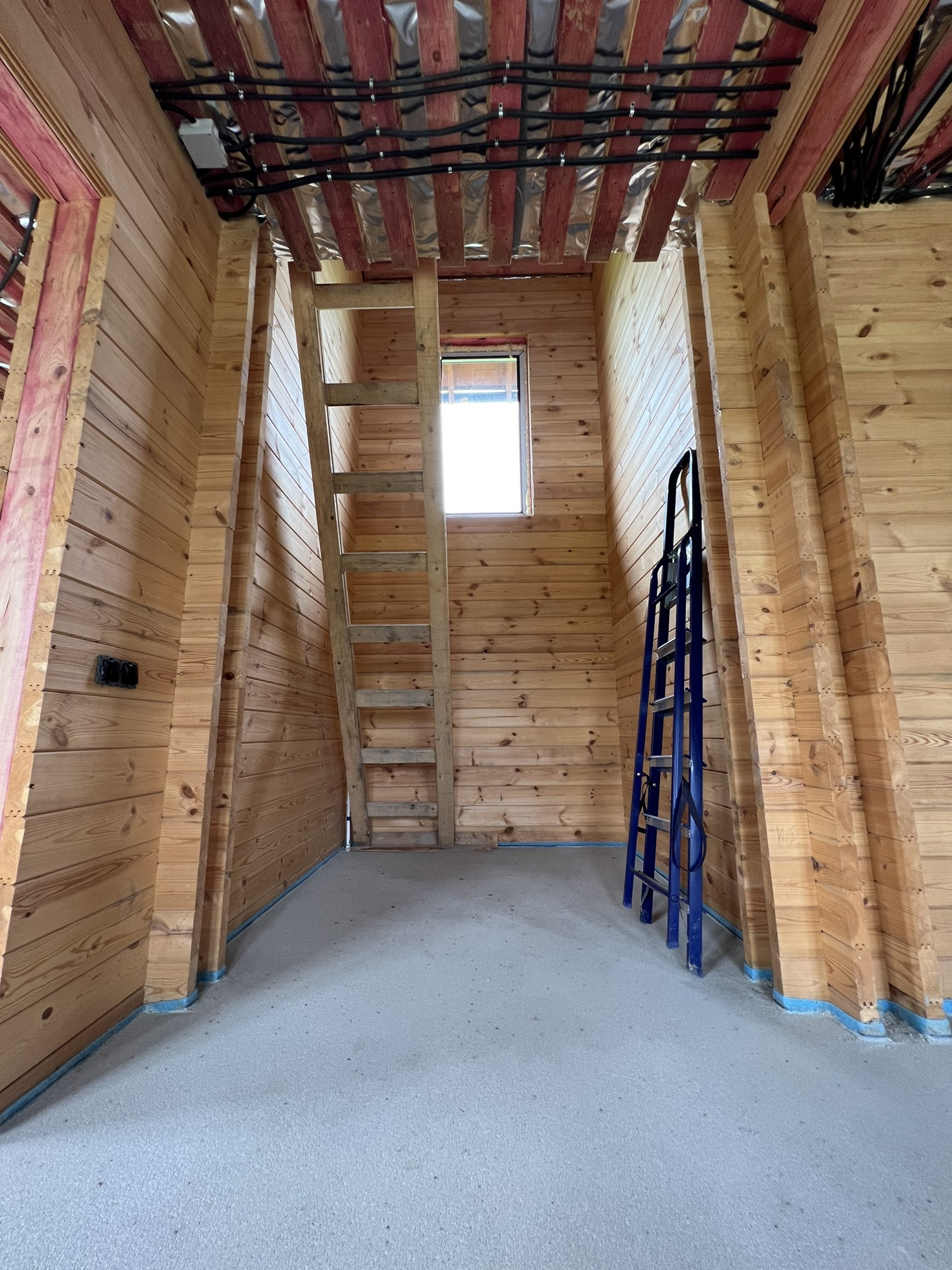 -Проводка- скрыта в стене, до задувки эковаты, в негорючей гофре.