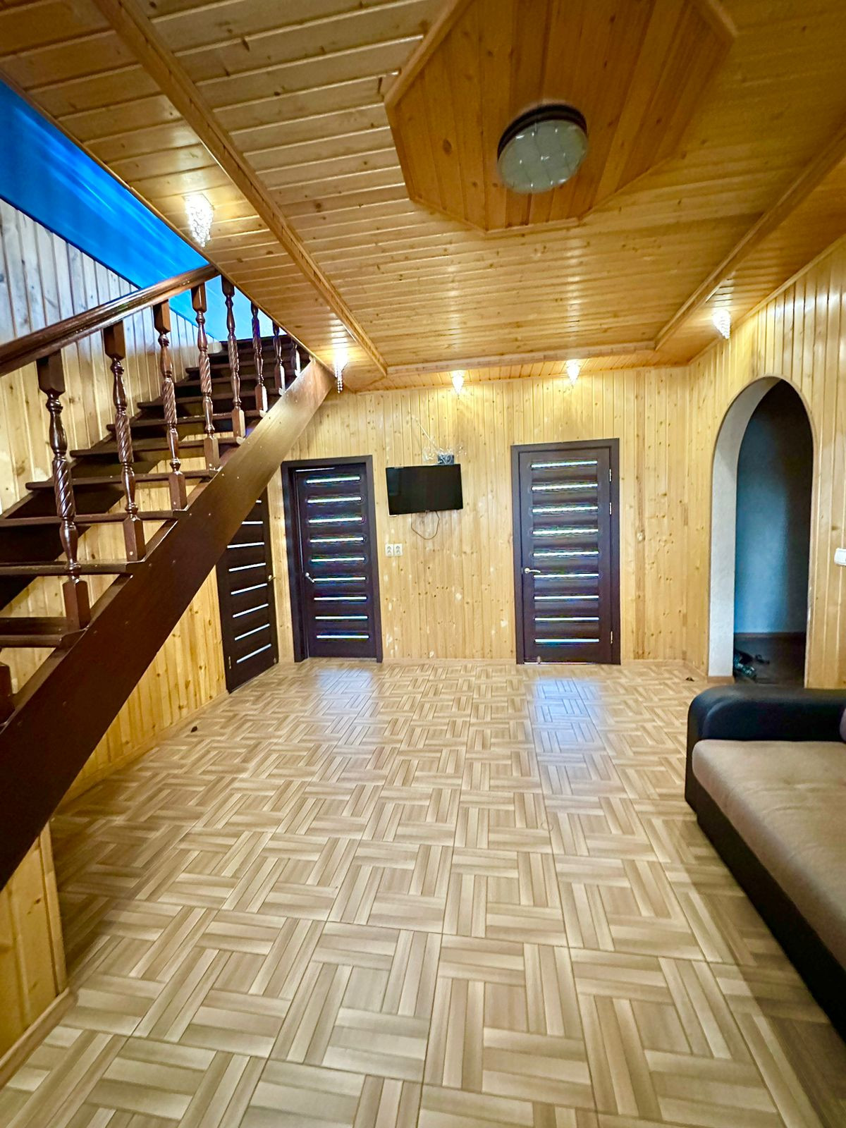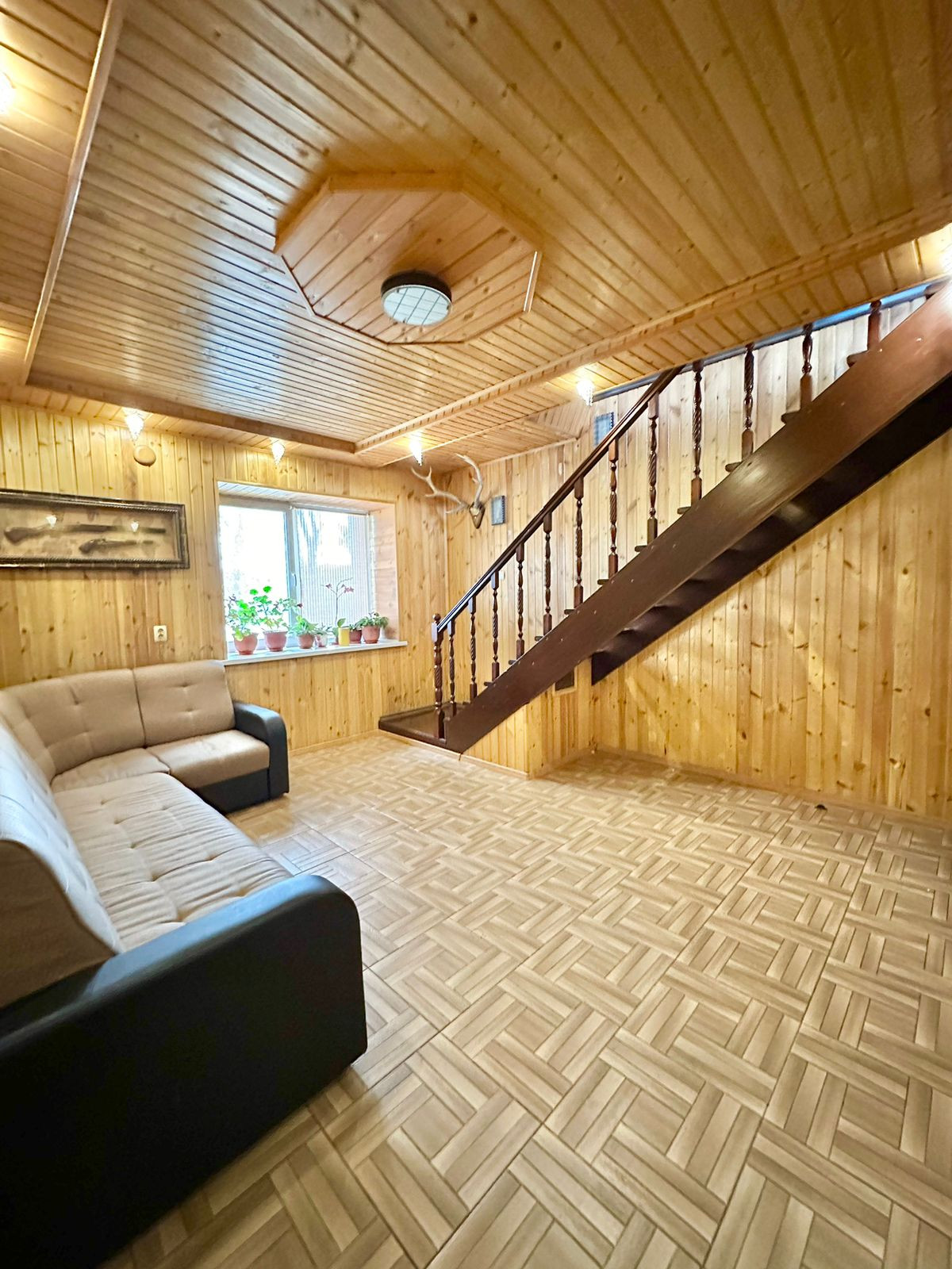 Продам большой отдельно стоящий дом с земельным участком. Первый этаж - кирпич, второй брус. На первом этаже расположены: гостиная, бельевая, кухня, спальня, санузел. На втором этаже: гостинная и две спальни. Высокий подвальный этаж, на всю территорию дома.