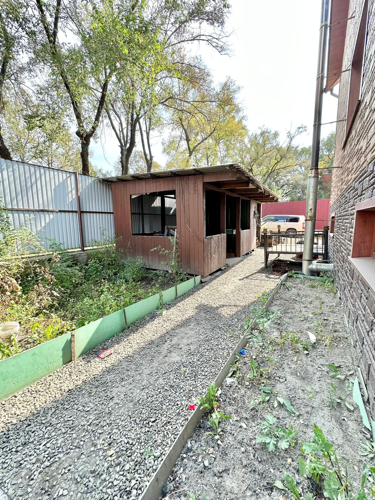 Участок 801 кв м в собственности, 227 кв м - аренда. На территории есть летний дом площадью 80 кв м с печным отоплением.