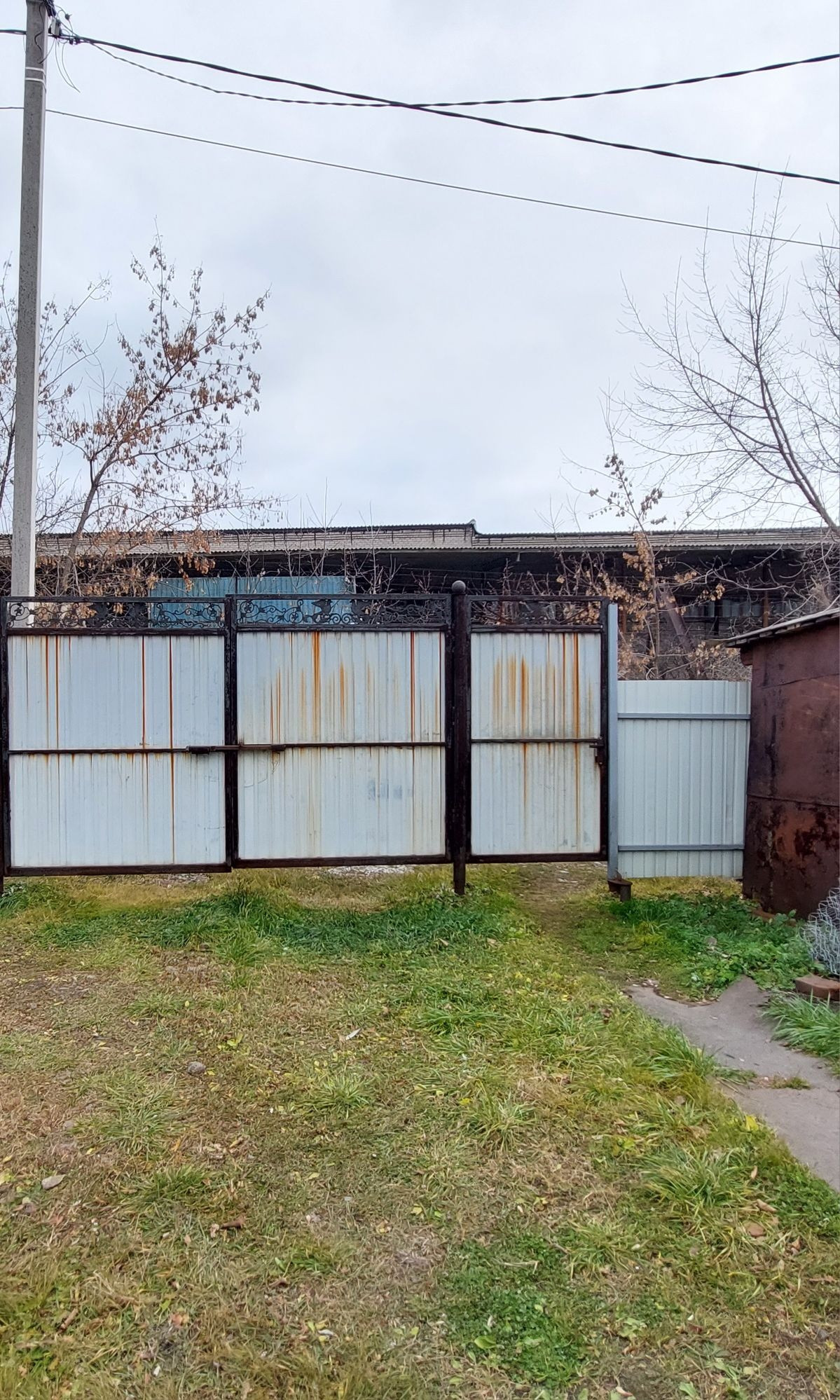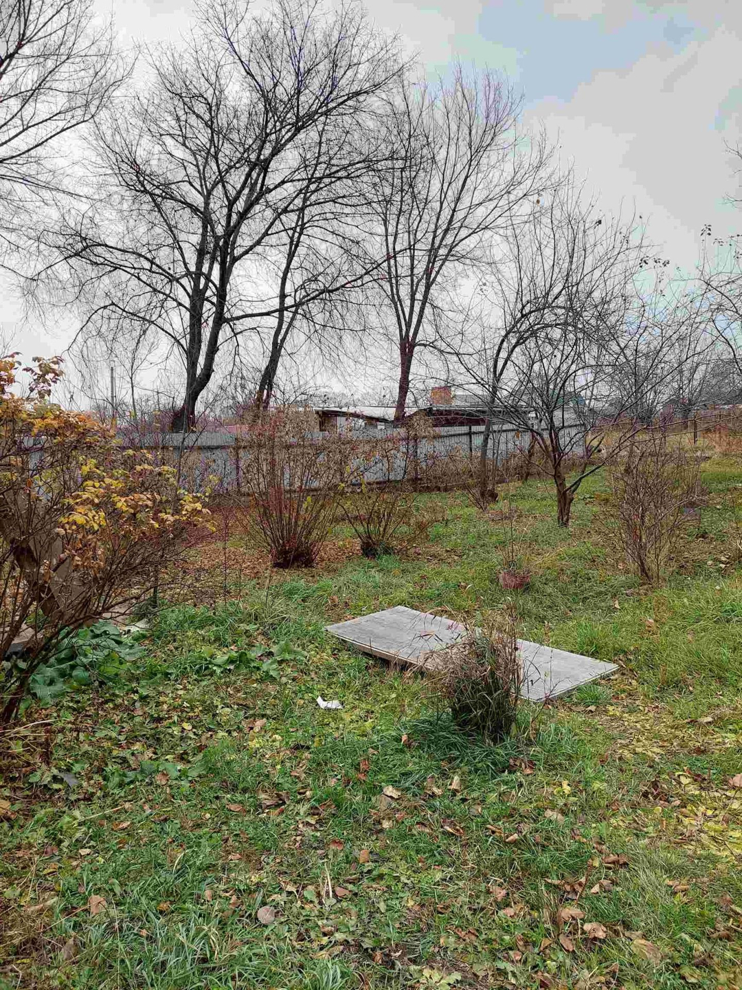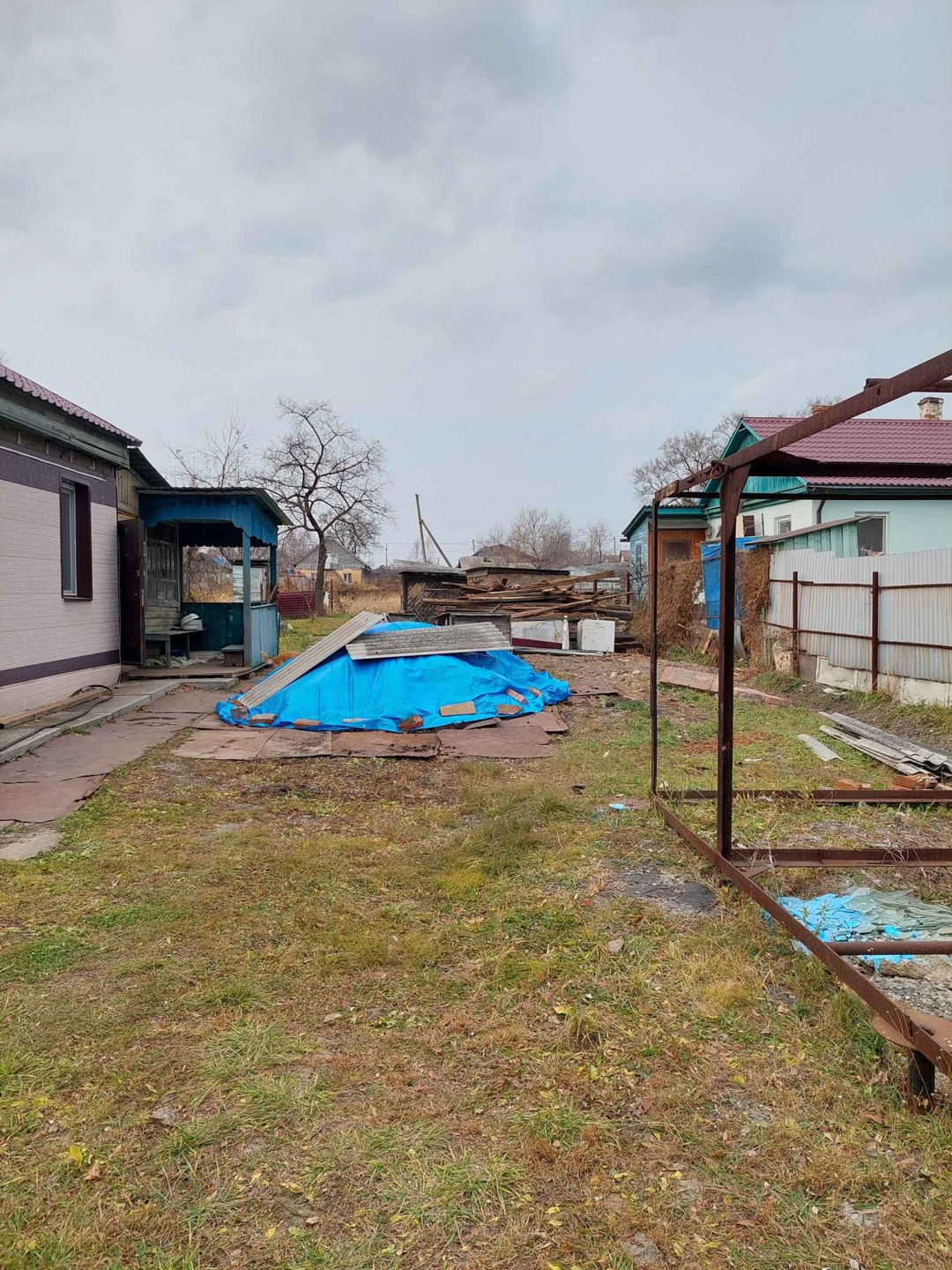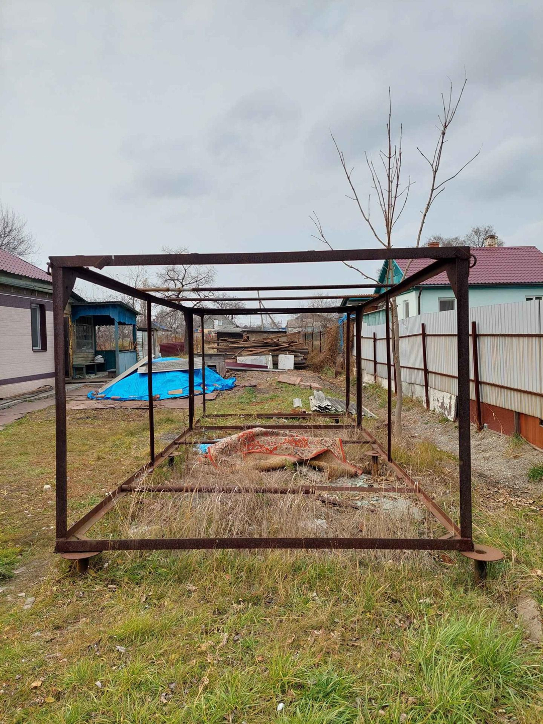 Большая придомовая территория, возле дома металлический каркас для гаража. Удобные подъездные пути.