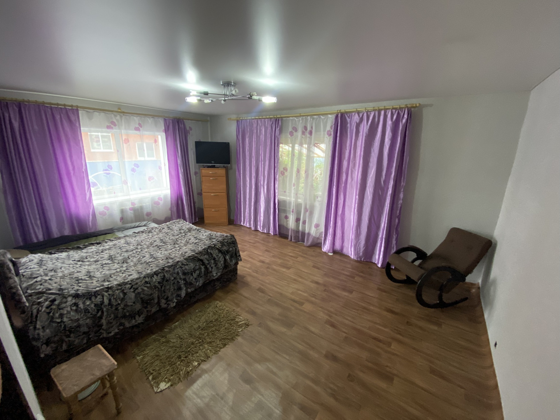 1 этаж: 2 спальни, гостиная, гардеробная, кухня, санузел.
