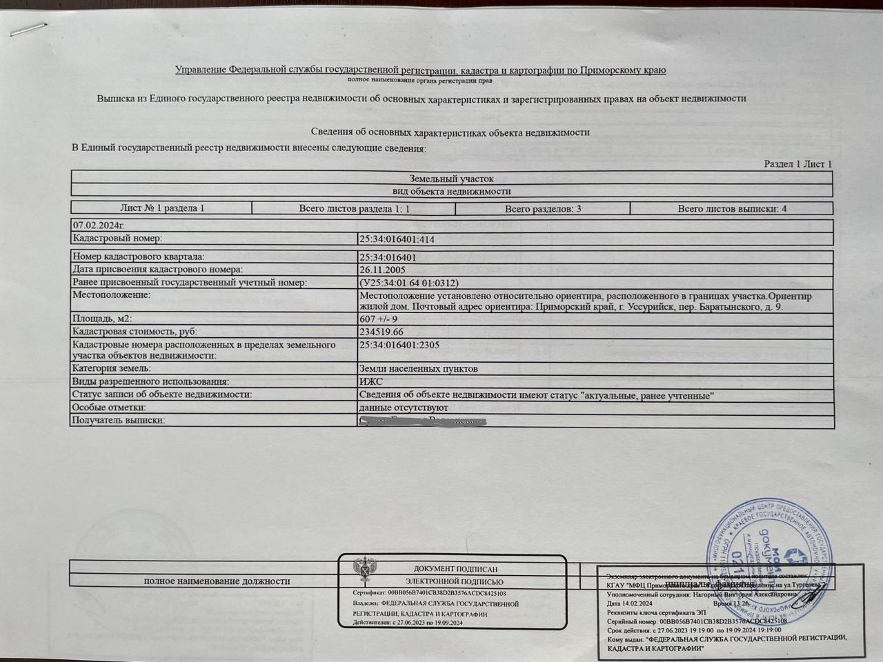 Площадь участка 607 сот.